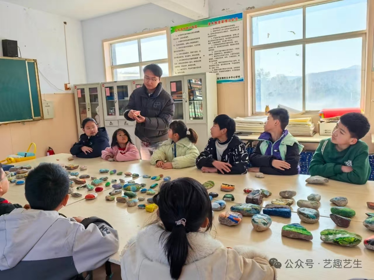 12月23日,艺术学院青马工程培训班走进卫辉狮豹头乡中心学校,开展石头画实践活动,将艺术创作与乡村教育实践相结合。