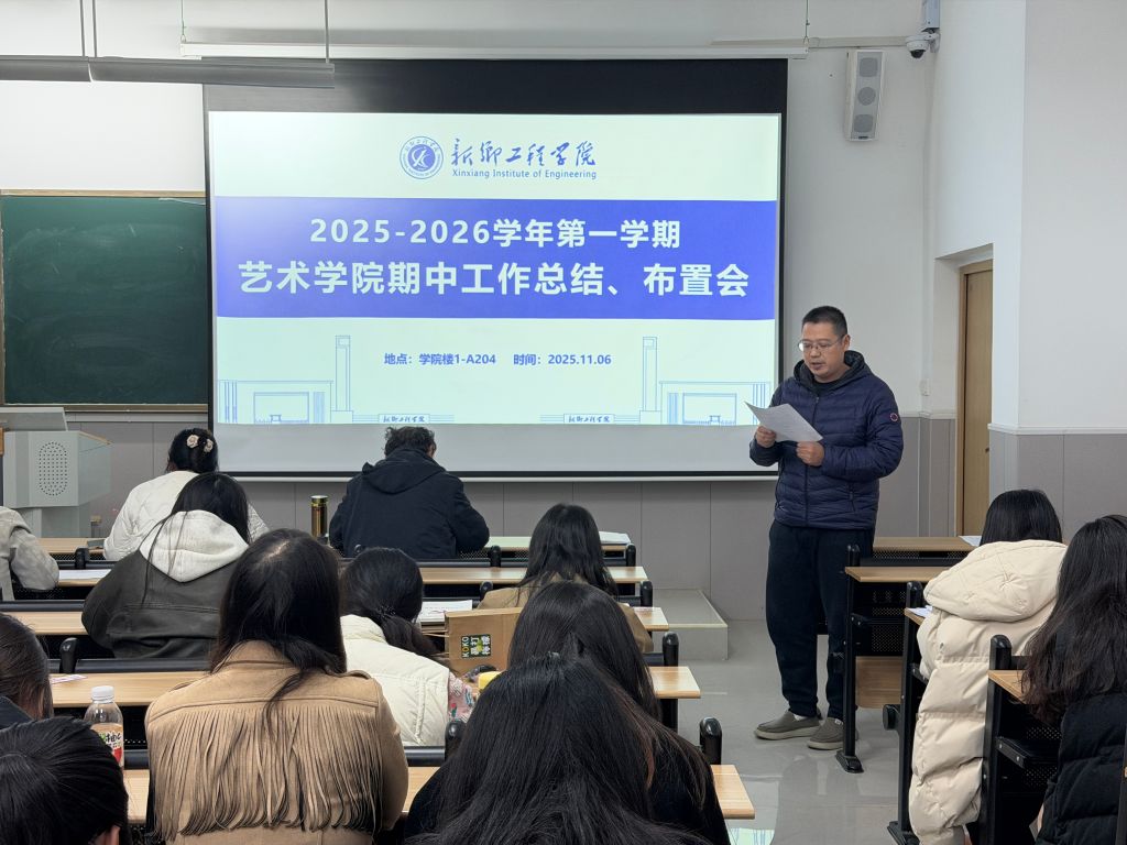 为进一步梳理工作成果,明确发展方向,确保各项任务高效推进,11月6日,艺术学院在学院楼1-A204组织召开了期中工作总结暨下半学期工作布置会议。会议由院长张建伟主持,全体教师参加。