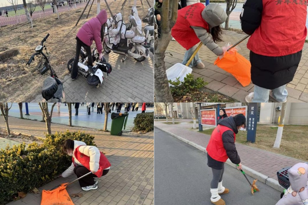 身着红马甲的志愿者们,提前备好扫帚、簸箕、垃圾袋等各类劳动工具,以饱满的热情投入校园清洁工作。他们分组行动,对教学楼周边、角落、绿化带间隙等校园各区域、将散落的落叶、隐藏的生活垃圾与废弃杂物逐一清扫、集中收纳,用不怕脏累的实际行动,践行志愿者良好精神。