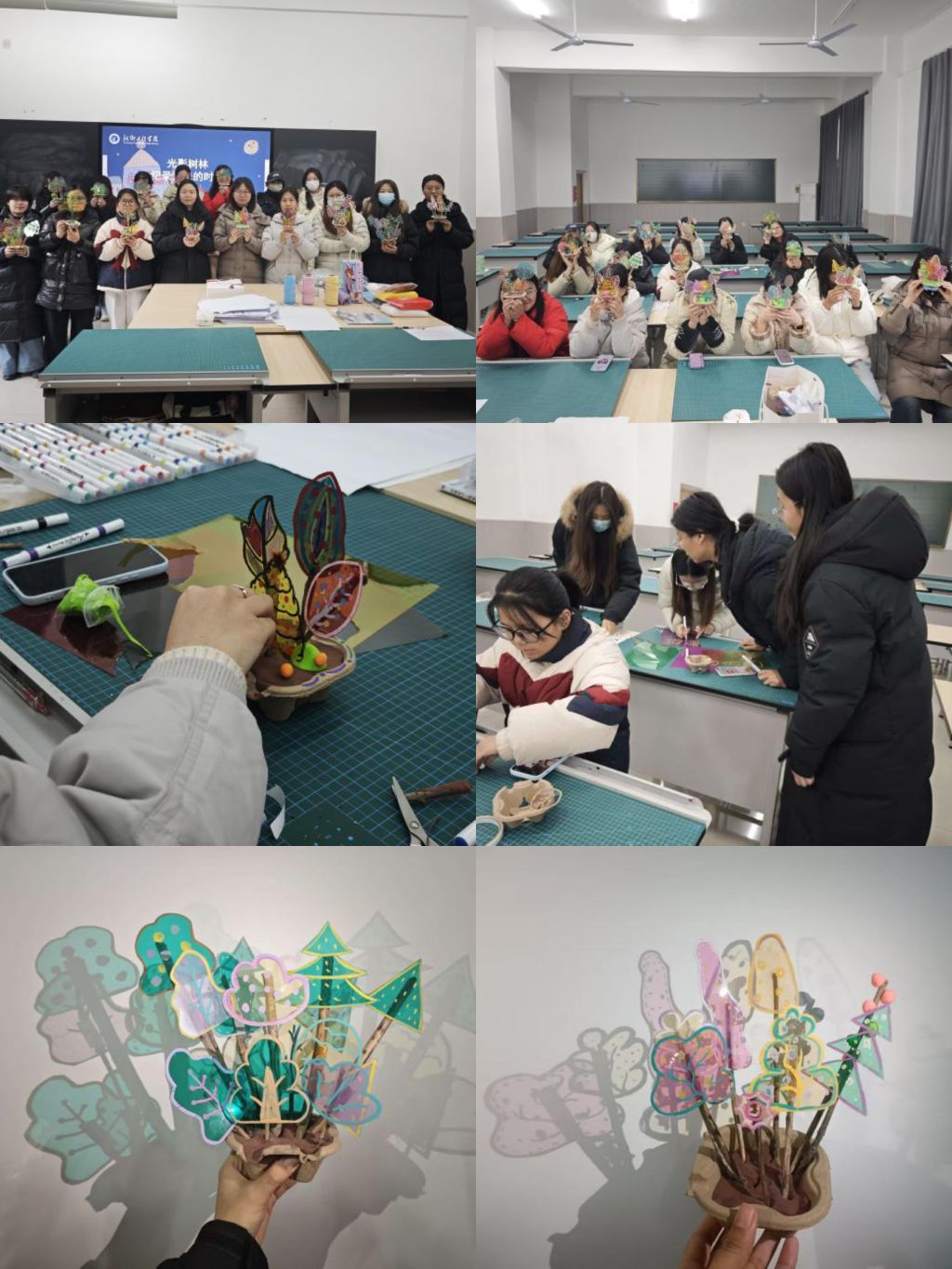 成长的攻坚路上,压力与焦虑在所难免。在这个环节,孙老师以“光影树林:记录遇光的时刻”为主题,带着学生永“光影思维”观察生活,用简单材料(如PVC透光纸、树枝、彩泥)纪录日常光影,不用记住复杂理论,只需记得 “光影可创造,美好可留存”,让疗愈融入生活,“用手工联结光影,用光影疗愈心灵”。