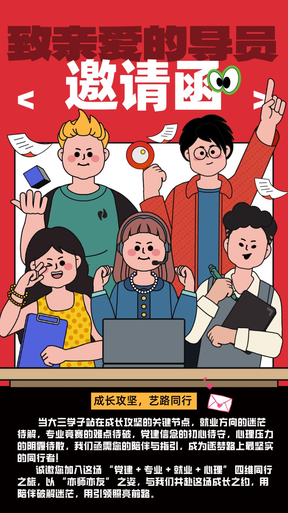 当大三的成长进入“攻坚期”,就业方向的迷茫、竞赛突破的瓶颈、心理压力的累积等,像一道道关卡,考验着每一位学子。这一次,《导员,“艺”路同行》第四站如约而至,以 “就业规划、专业竞赛、党建引领、心理疗愈” 四维发力,用一周时间,陪你拆解难点、坚定方向、释放情绪,在红韵与艺术的交织中,解锁 “亦师亦友、双向奔赴” 的成长密码。