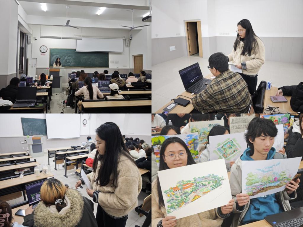 专业竞赛是大三学子提升能力、积累筹码的重要平台,但“选题落地难”“创意同质化”却成了不少人的“拦路虎”。孙老师用“反面案例 + 优秀作品”对比分析:“环设选题不要盲目跟风‘大项目’,可以从身边的社区改造、乡村微更新入手,小切口也能出精品”“视传创意要避免同质化,不妨融入红色文化、校园特色等专属元素,让作品更有辨识度”。结合近期的“挑战杯”大学生创业计划竞赛以及NCDA,好创意,米兰设计周等专业竞赛内容,鼓励高年级同学积极报名参与,也是检验自身专业能力的重要渠道。