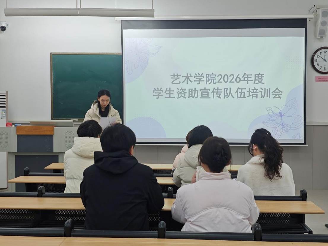 为进一步规范学生资助工作,强化资助宣传队伍建设,让国家资助政策精准落地、温暖直达每一位学生,3月4日艺术学院在学院楼1-A304顺利召开2026年度学生资助宣传队伍培训会。资助专管员汪书宇及全体学生资助宣传成员参加本次培训。