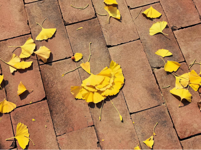 另一位女生以银杏叶摆出跳芭蕾舞的女孩:“我想告诉自己,即使偶尔迷失,人生终会走向光亮。”