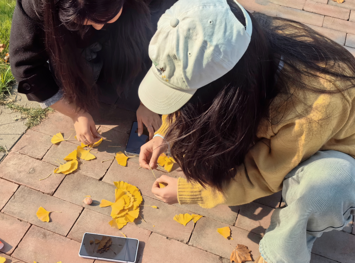 李老师阐释活动初衷:“‘叶落’常被联想为消逝与凋零,但我们希望学生通过亲手触碰、重新创造,感知生命阶段的自然转换。将零落叶片拼成完整图画,正如把日常中散落的情绪碎片重新整合,形成对自我更清晰的认知。”