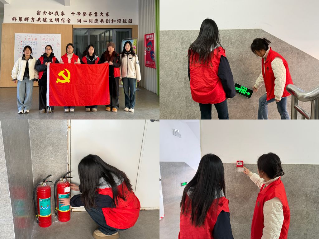 艺术学院持续推进“党建+安全”网格化管理,促进党建工作与校园安全深度融合。S3宿舍楼作为我院学生住宿核心区域,消防安全责任重大。本期发展对象积极发挥先锋模范作用,对该楼栋展开全面消防安全排查,重点检查消防设施配备、用电规范、应急通道畅通等情况,及时消除安全隐患,以实际行动践行初心,助力营造安全、稳定、有序的校园环境。