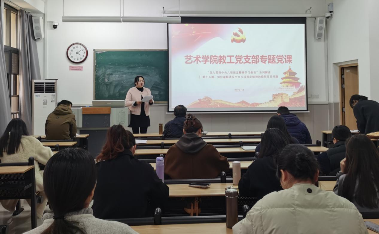 为深入学习贯彻习近平总书记关于党的建设的重要思想,持续加强党员队伍建设,引导全体教工党员坚定理想信念、强化宗旨意识,艺术学院教工党支部于11月27日在学院楼A212精心组织了十一月专题党课。本次党课以“锤炼坚强党性 践行艺术为民”为主题,旨在教育引导党员教师将党性修养内化于心、外化于行,自觉融入到艺术教育、创作与服务的具体实践中。