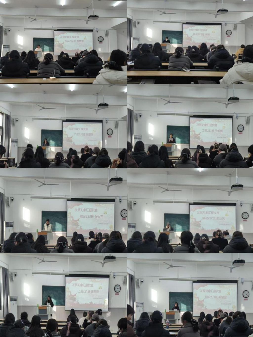 首先,九名发展对象依次汇报对党的认识、入党动机、个人经历以及现实表现等情况。其次,入党介绍人分别介绍了各发展对象的培养考察情况,对其政治素养、综合素质、群众基础等方面进行了全面评价,并一致同意推荐其加入中国共产党。各党支部书记代表党支部委员会向大会报告了对发展对象的审查情况,详细说明考察期间的培养教育工作及审查结果,认为9名发展对象已基本具备党员条件,符合入党要求。