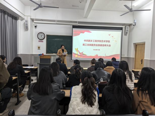 10月23日,新乡工程学院艺术学院教工支部在学院楼A216成功召开了全体党员大会,顺利完成了新一届支部委员的换届选举工作。大会应到党员34名,实到党员28名,实到会人数符合党章及相关规定,会议有效。大会在雄壮的《中华人民共和国国歌》声中正式开幕,会议严格按照基层党组织选举工作程序进行。