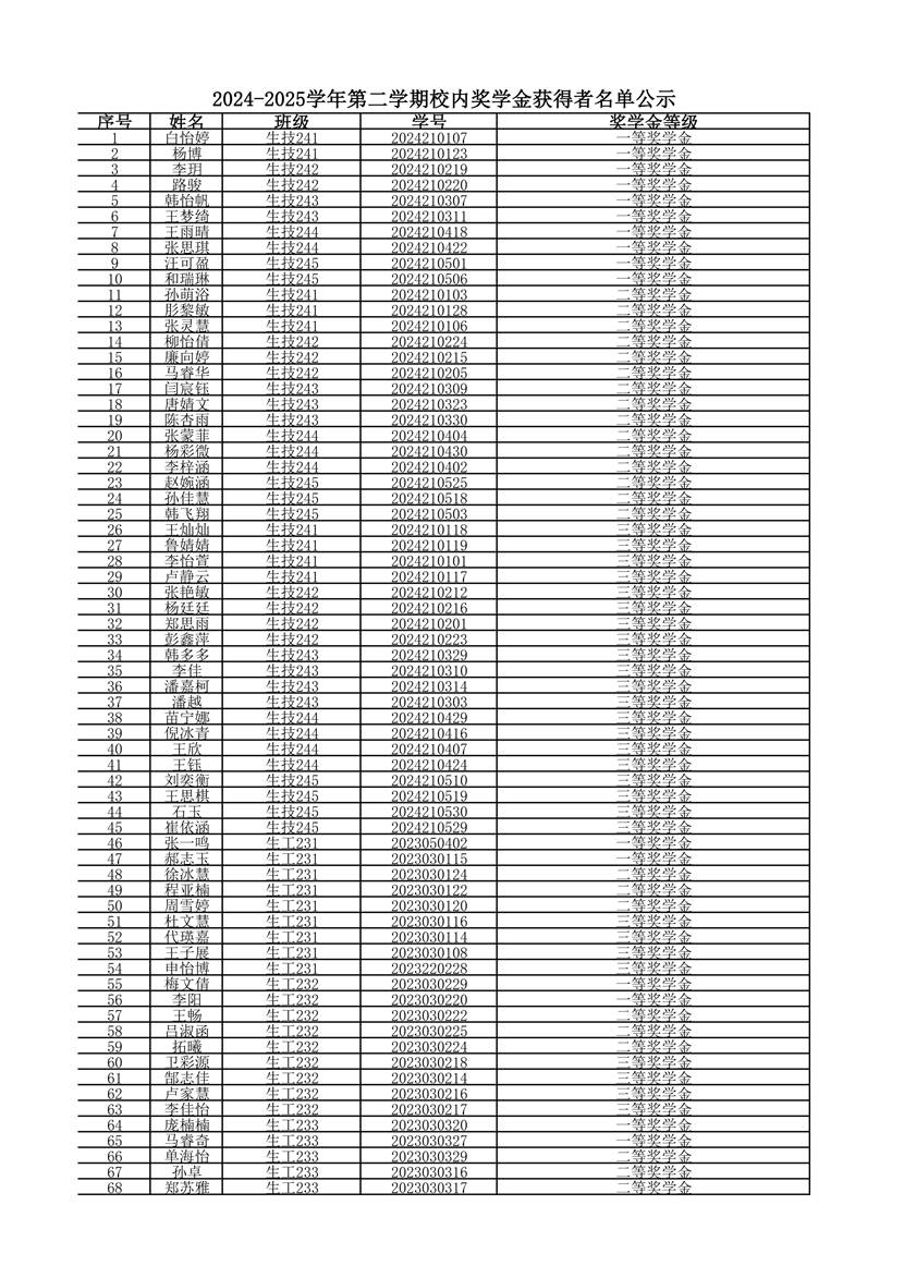 根据校发相关文件要求,经学生申请、学院评审,现将拟获得校内奖学金学生名单予以公示。