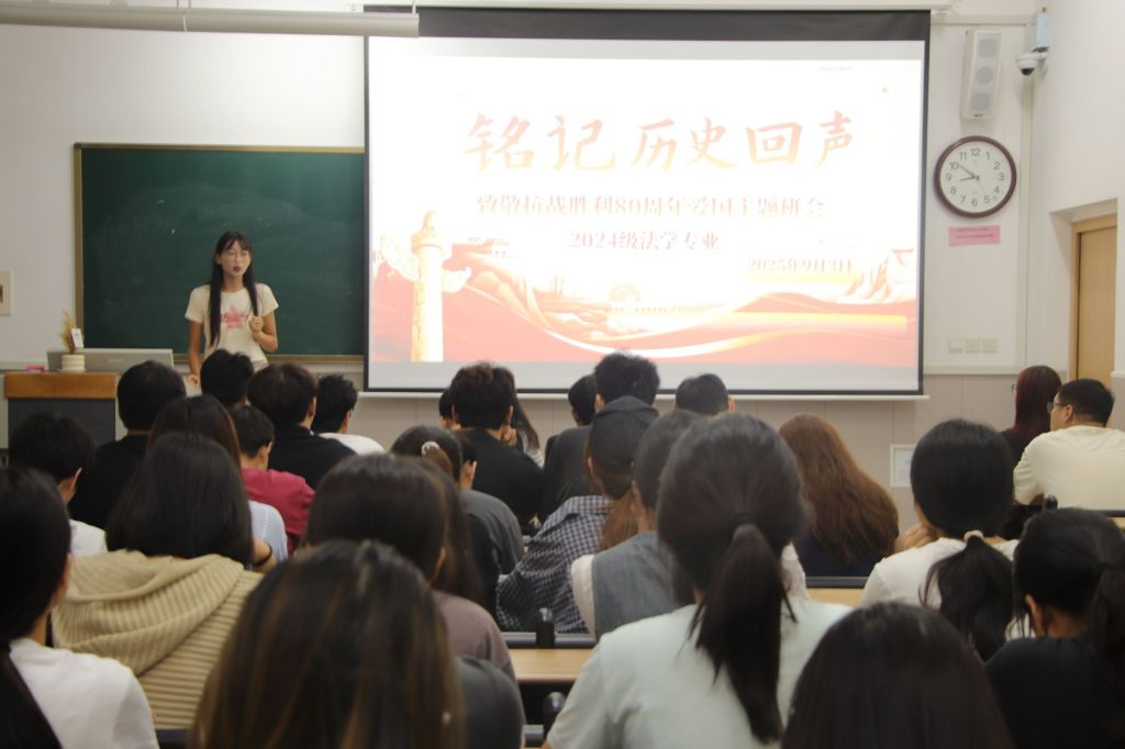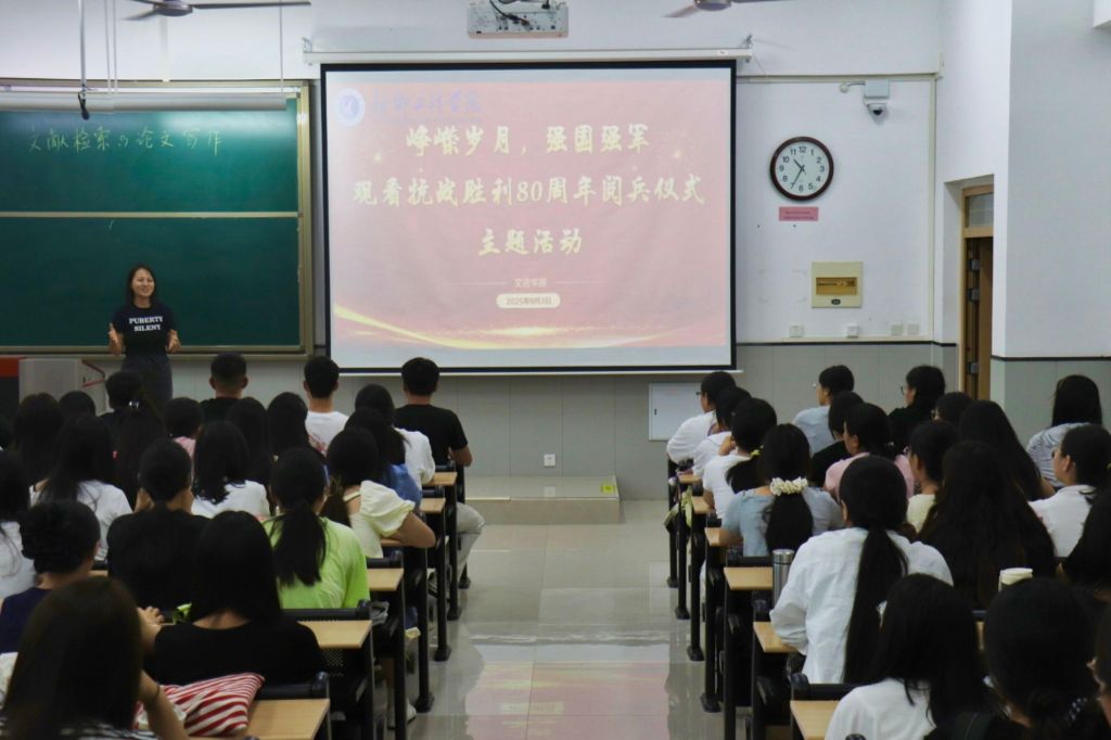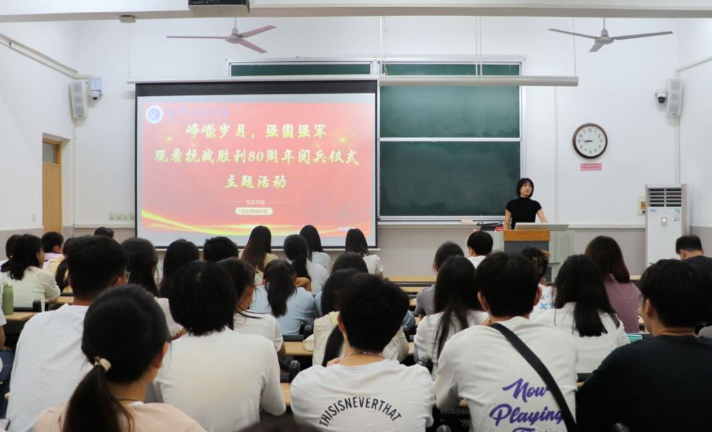 为隆重纪念中国人民抗日战争暨世界反法西斯战争胜利80周年,大力弘扬伟大抗战精神,进一步激发青年学子的爱国热情与民族自豪感,9月3日上午,文法学院组织各班级开展“观看九三阅兵”主题班会。全体学生齐聚教室,通过电视直播共同见证纪念中国人民抗日战争暨世界反法西斯战争胜利80周年阅兵式的庄严盛况。