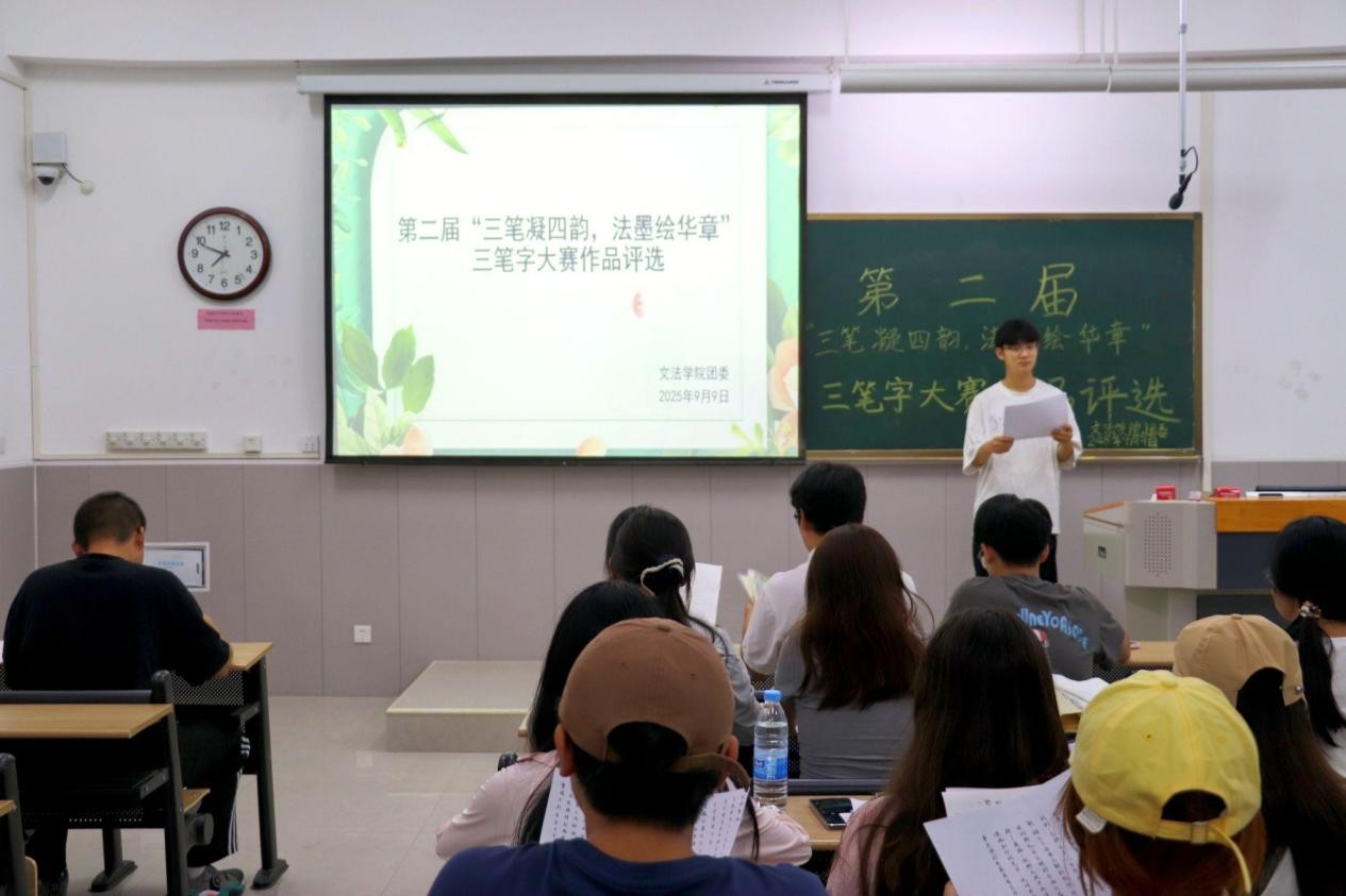 为扎实推进“赛训并举砺师能,读写说画筑匠心”师范技能提升月暨长期实践行动,弘扬师范精神,加强师范生基本功训练,我院于9月9日晚在学院楼B–207教室举办第二届“三笔凝四韵,法墨绘华章”三笔字大赛,我院学生积极参与。