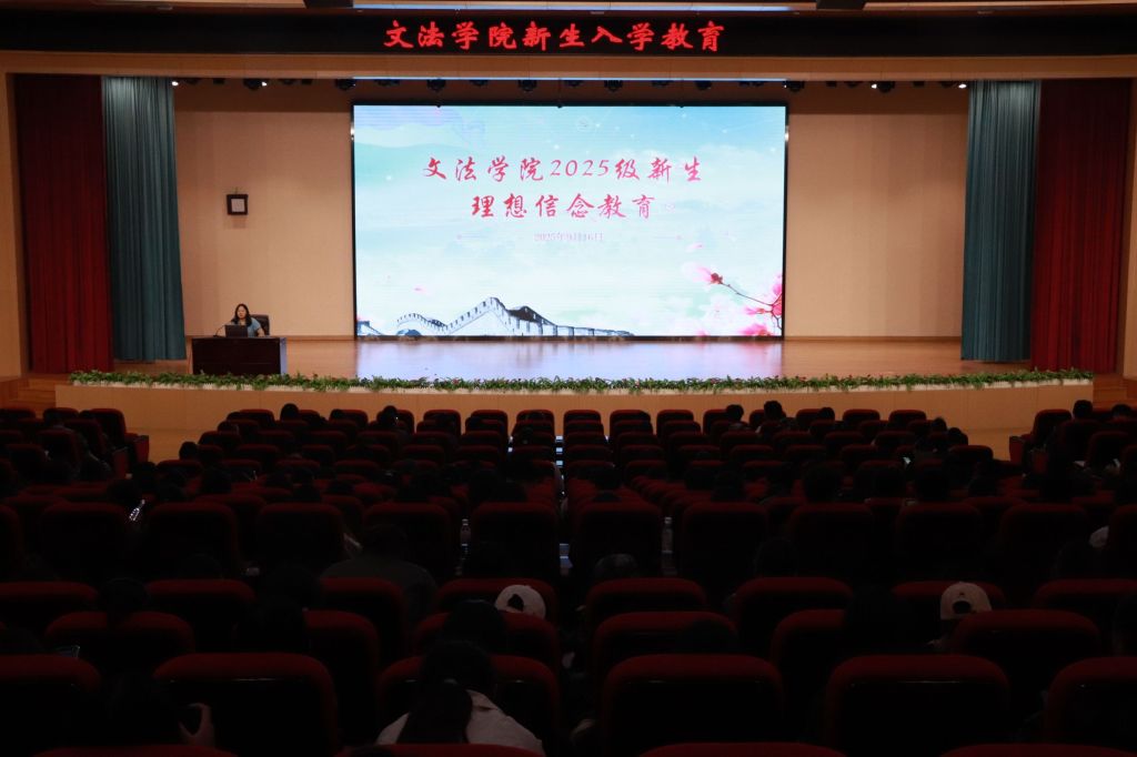 为帮助2025级新生筑牢理想信念根基、明确人生航向,以昂扬姿态迎接大学生活,文法学院于9月16日在文渊楼报告厅召开2025级新生理想信念教育会议。本次会议由我院张琦老师主讲,文法学院全体新生积极参与。