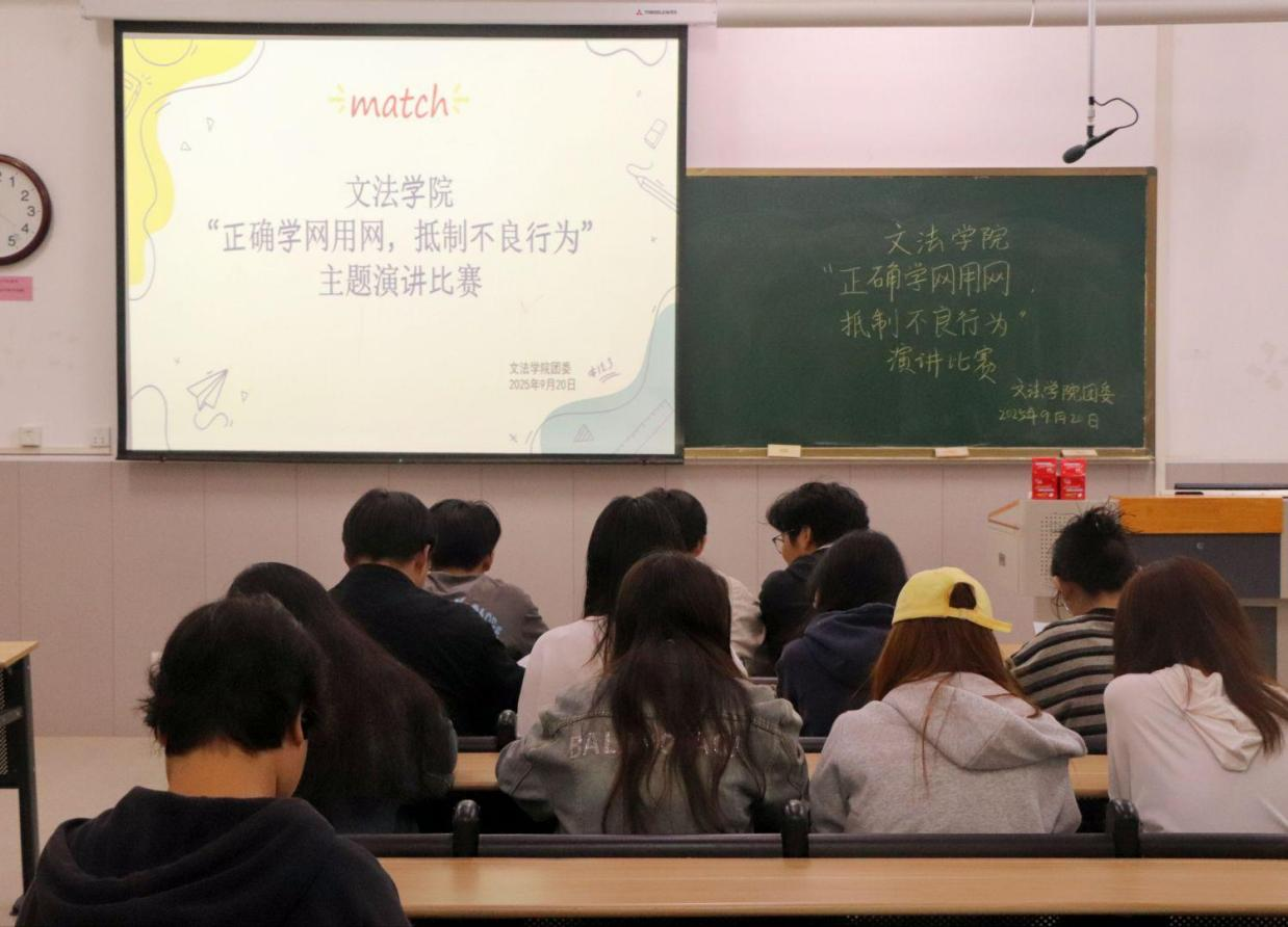 为引导同学们树立科学用网观念,筑牢抵制网络不良行为的思想防线,我院于9月20日晚在学院楼B-207教室成功举办以“正确学网用网,抵制不良行为”为主题的演讲比赛,我院学生积极参赛。