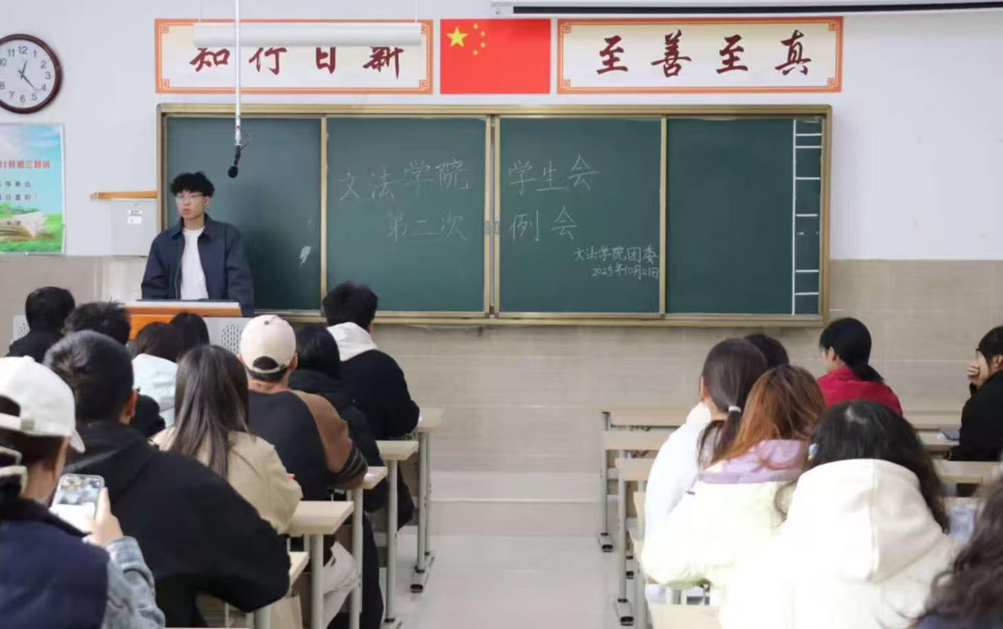 宣传部崔兰翔总结,文法学院学生会第二次例会黑板字、“强国防,兴中华”征兵主题黑板报已完成并展出。