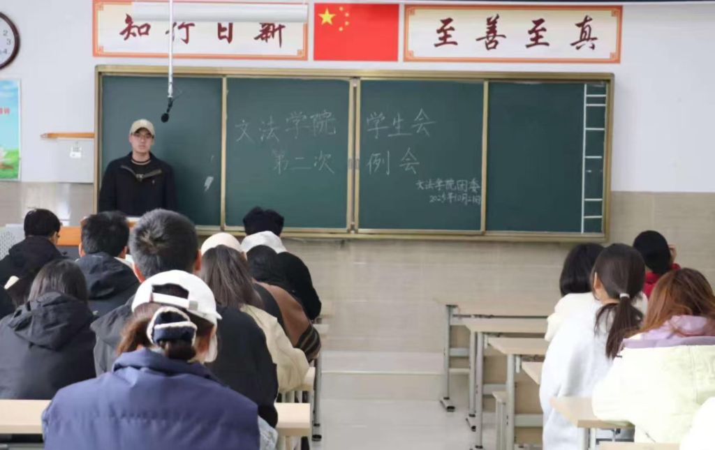 10月21日中午,我院学生会2025-2026学年第二次全体例会在北校区启智楼229顺利召开。会议由学生会主席陈李浩主持,主席团成员、各部门部长及全体干事共同参会,明确下一阶段工作方向,凝聚团队服务意识。