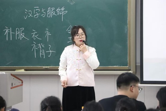 随后,罗艳娟以汉字“衣”为切入点,开启了这场文化探索之旅。她在课堂上细致地讲解“衣”字的构形宛如古代先民所穿的上衣,其笔画结构暗藏着古人对服饰形态的直观描绘。通过对“衣”字字形演变的梳理,罗艳娟进一步揭示了其背后承载的服饰文化密码。从古代服饰的基本形制到服饰在不同历史时期的功能与意义,同学们在汉字的一撇一捺间,初步触摸到传统服饰所蕴含的文化脉络。