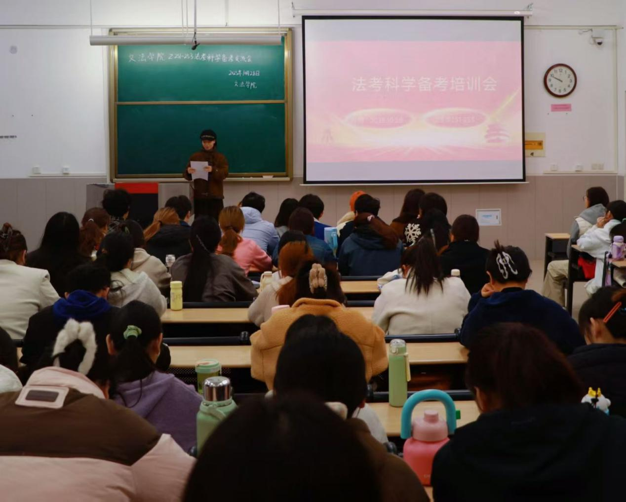 为帮助学生明确职业方向,深化学生对专业发展的认知,科学备考法考,10月28日上午,文法学院于学院楼B–402教室举办法考备考指导专题讲座。本次活动由刘旭行老师主持,马利鸽老师主讲,专升本法学251、252、253班全体学生参与。