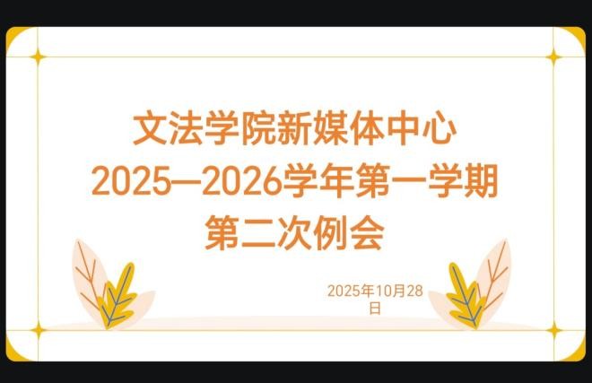 我院新媒体中心于10月28号中午在线上召开2025-2026学年第二次例会,各部门部长及干事参加此次会议。会上,各部门依次对近期的工作进行了总结与汇报,并提出相应的解决措施,会议全程井然有序,圆满完成各项议程。