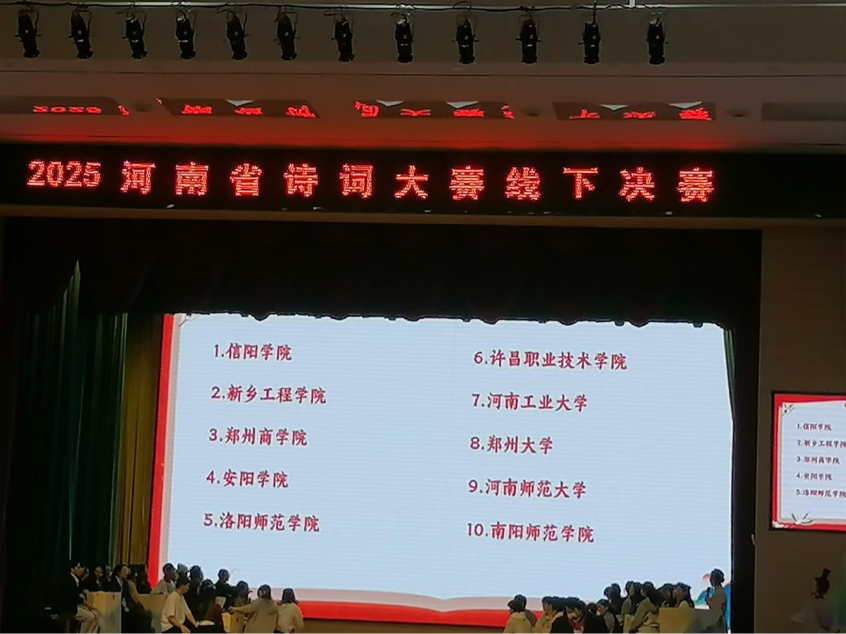 本届诗词大赛由河南省教育厅主办,赛事历时六个月,吸引了全省79所高校参赛。经过多轮激烈角逐,文法学院代表队凭借扎实的文学功底,从初赛40强中脱颖而出,与郑州大学、河南师范大学等高校共同晋级决赛。决赛中,学院学子沉着应战,展现出深厚的诗词功底与良好的竞技风貌。