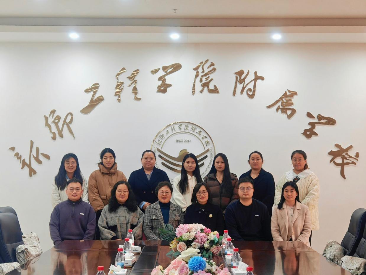 为深入对接基础教育改革需求,优化师范生培养体系,11月14日,文法学院常务副院长罗艳娟及专任教师王玉玮深入新乡工程学院附属学校进行调研,召开行业专家座谈会,初中部校长王晓玲、主任刘娜、语文教学组骨干教师白莎莎、郑秋红、焦洁等共同与会。参会人员围绕汉语言文学专业2026版人才培养方案修订工作进行深入交流。