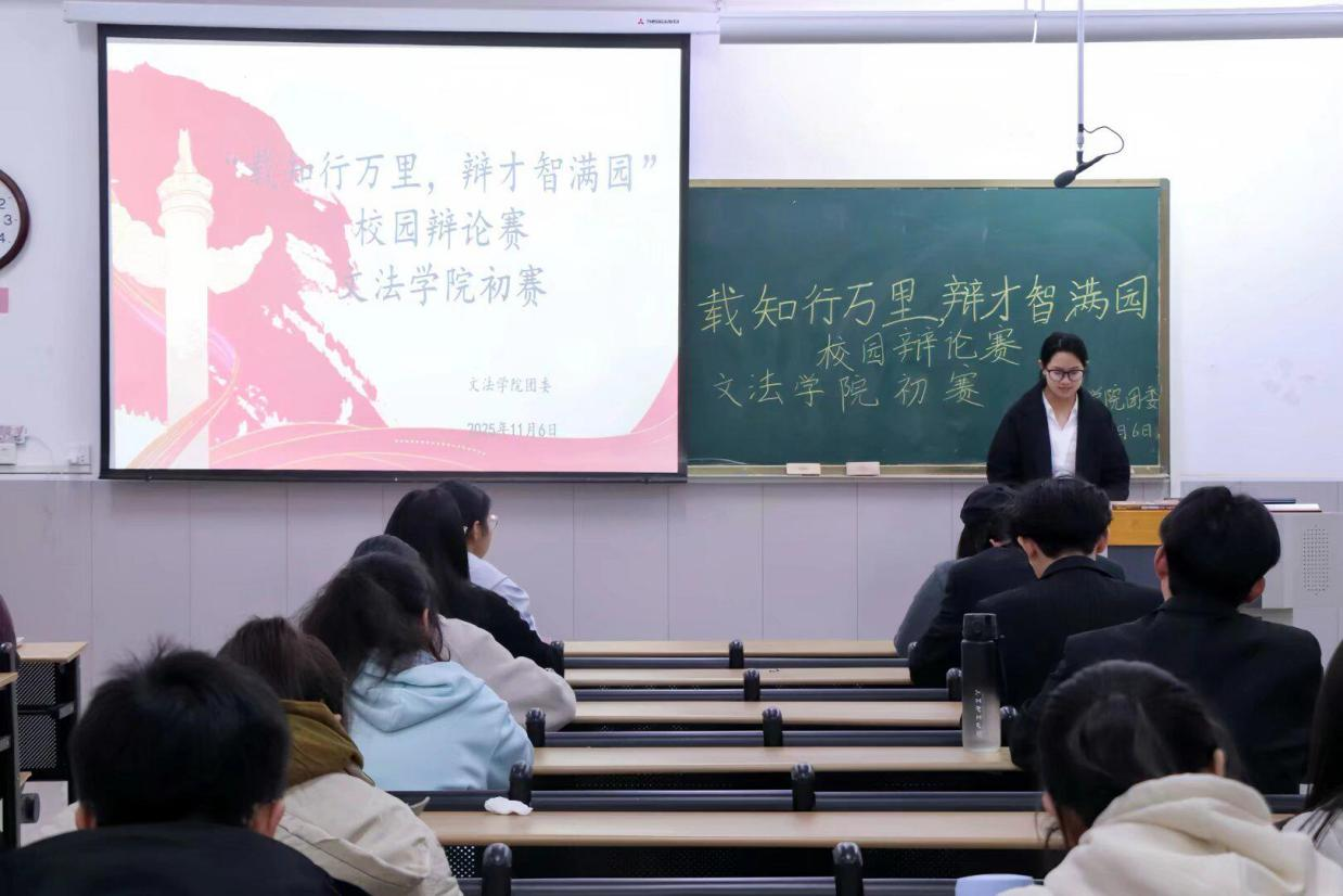 为丰富校园文化生活,提升学生思辨与协作能力,文法学院于11月8日至15日在南北校区同步举办了“载知行万里,辩才智满园”校园辩论赛初赛。本次比赛吸引全院多支队伍同台竞技,上演了一场场精彩的思想交锋。