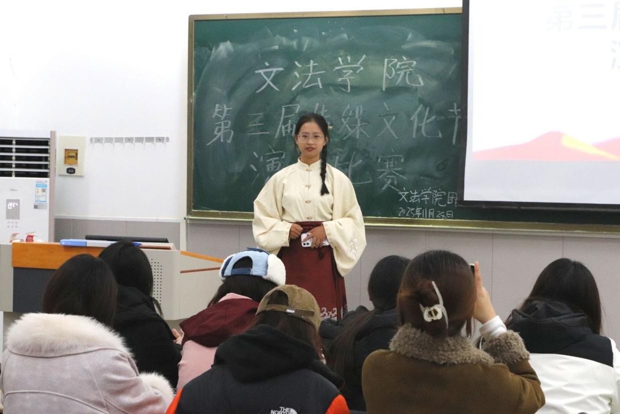比赛在热烈的氛围中拉开帷幕。参赛选手紧扣“聚焦传媒力量,讲述文化故事”主题,依次登台分享见解。有的选手从宏观视角出发,阐释传媒在弘扬中华优秀传统文化与红色精神中应承担的时代责任;有的选手结合亲身经历,讲述如何借助短视频、直播等新媒体形式,让家乡的非遗文化与地域特色焕发新生。同学们演讲风格多样,或激情澎湃,或娓娓道来,充分展现了文法学子敏锐的行业洞察力、扎实的专业理论素养以及主动投身文化传播的使命感,现场掌声不断,气氛热烈。