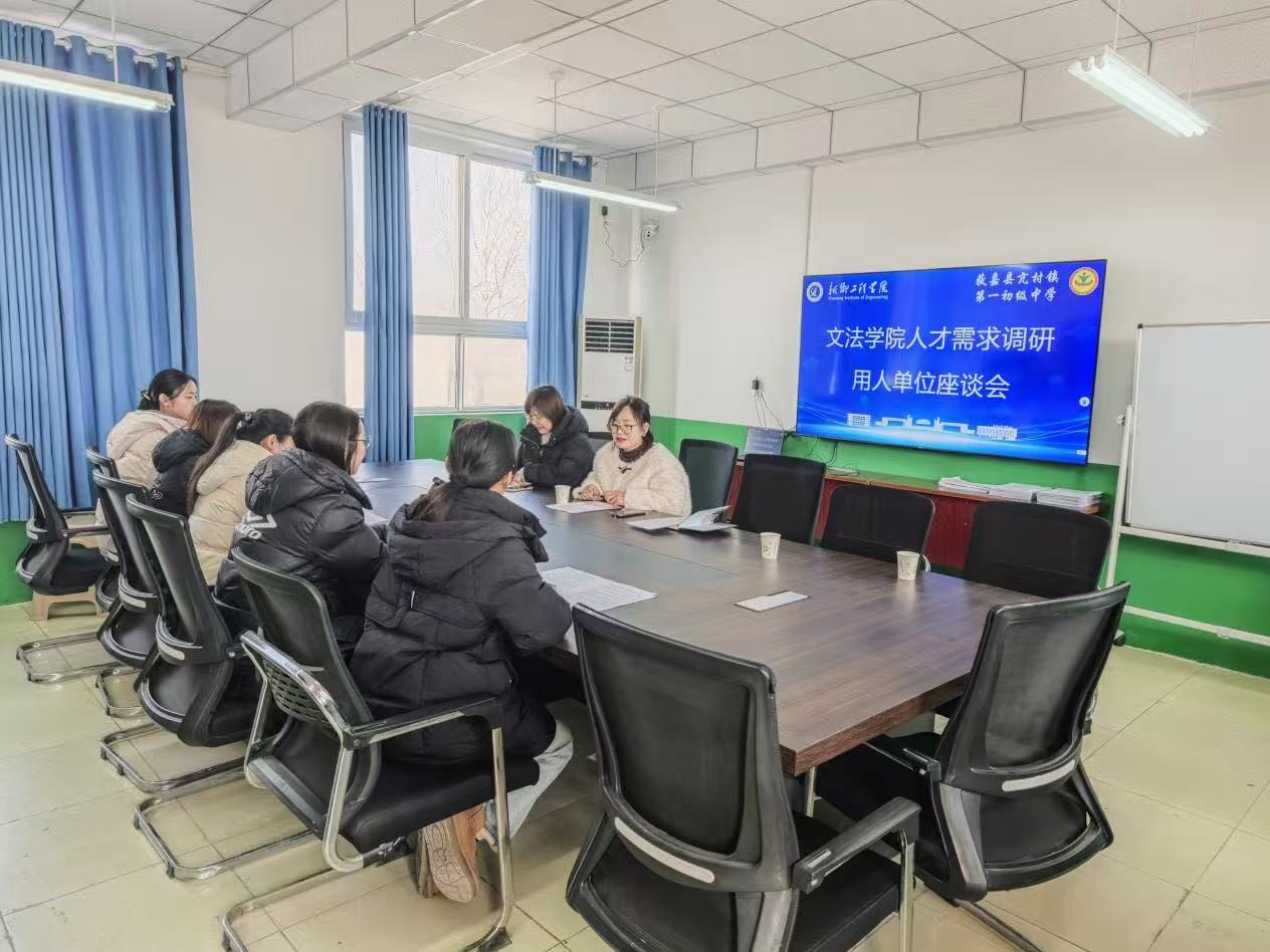 为深入对接基础教育一线需求,进一步优化2026版人才培养方案,推动师范教育与中学教学实际紧密结合,12月24日上午,文法学院常务副院长罗艳娟、汉语言文学教研室主任冯莉娟、汉语国际教育教研室专任教师王玉玮一行前往获嘉县亢村镇第一初级中学开展专题调研,并组织召开用人单位暨行业专家座谈会。亢村镇第一初级中学教导处主任李丽、初中语文教师董云、吴文佩、宋玉凤、王玉娜,以及我校优秀校友、现任教于该校的赵琰雨老师共同参与座谈。
