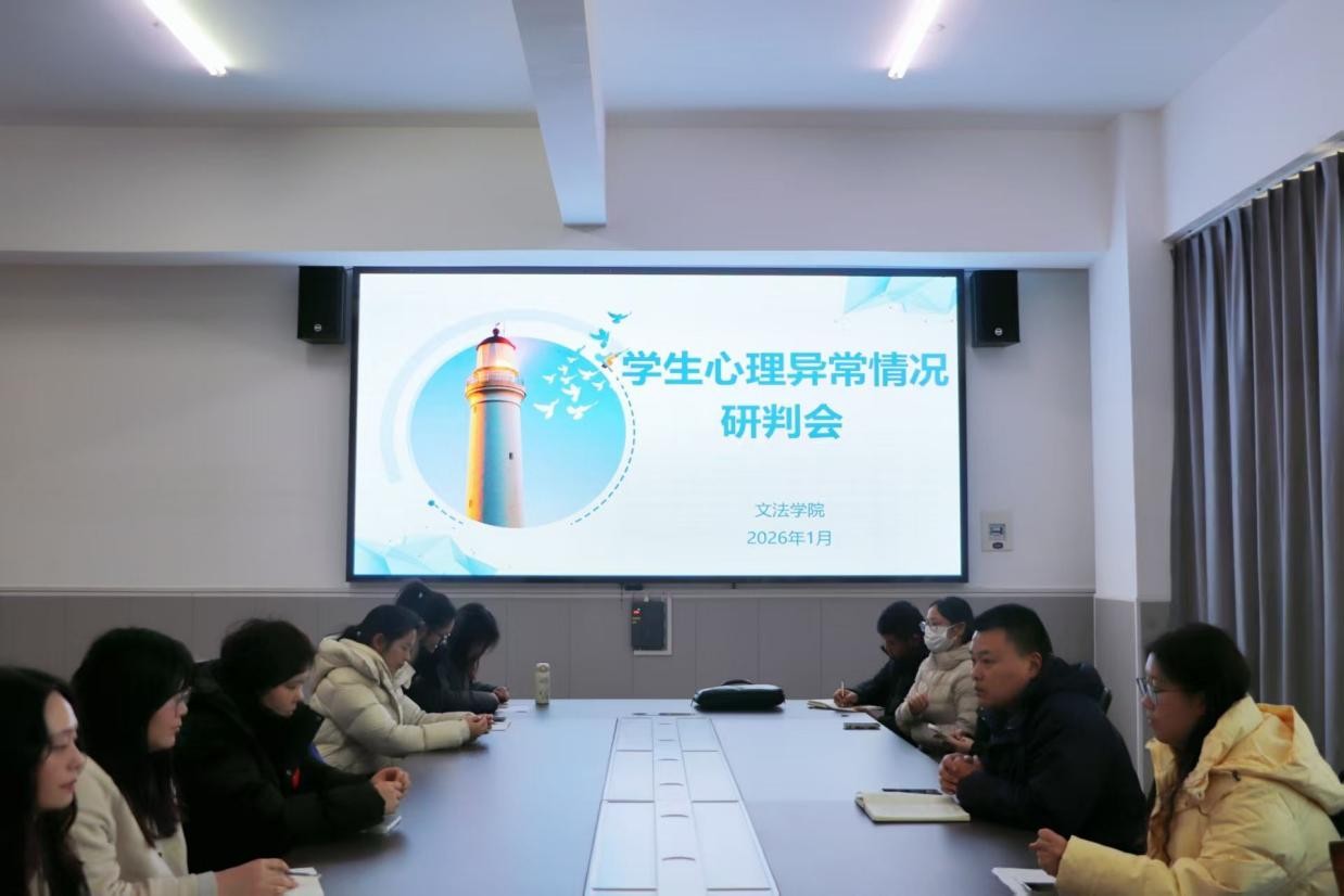 为精准排查本学期末学生心理健康风险,健全心理危机预警与干预机制,切实保障我院学生身心健康,2026年1月7日,文法学院在学院楼B-201会议室召开学生心理异常情况研判会。我院党委副书记张振华及全体辅导员出席此次会议。