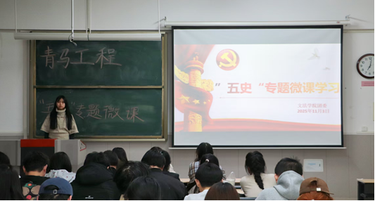 为深入推进青年马克思主义者培养工程,引导青年学子坚定理想信念、强化理论武装,文法学院于11月3日下午举办了青马工程“五史”专题微课学习会,文法学院全体青马工程学员参与。