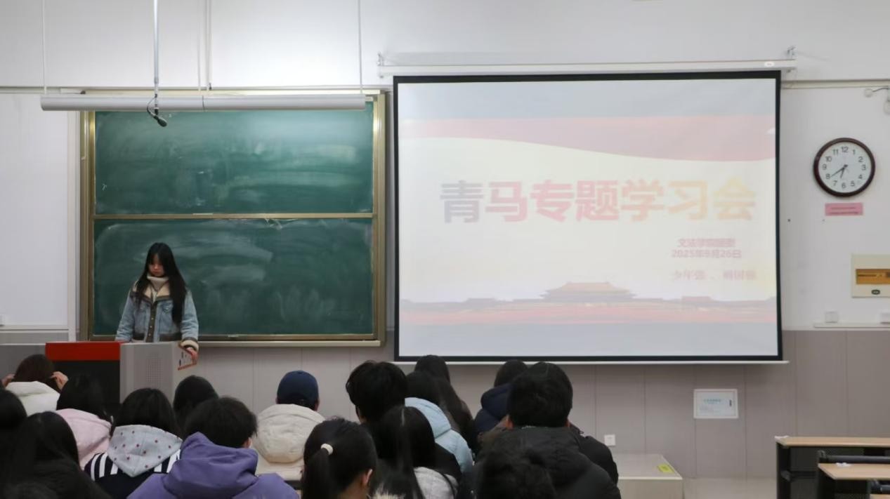 为筑牢青年理想信念根基,厚植新时代青年的使命担当与文化自信,9月26日,文法学院于南校区B203教室举办青马专题学习会,学院全体青马工程学员参与本次学习。