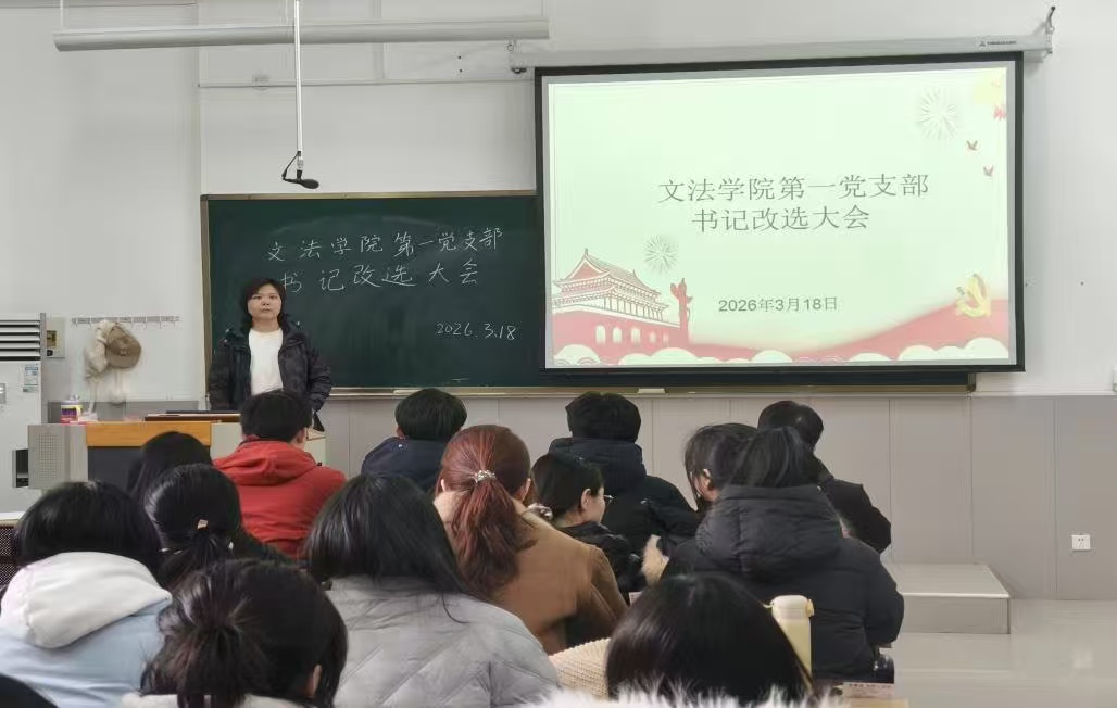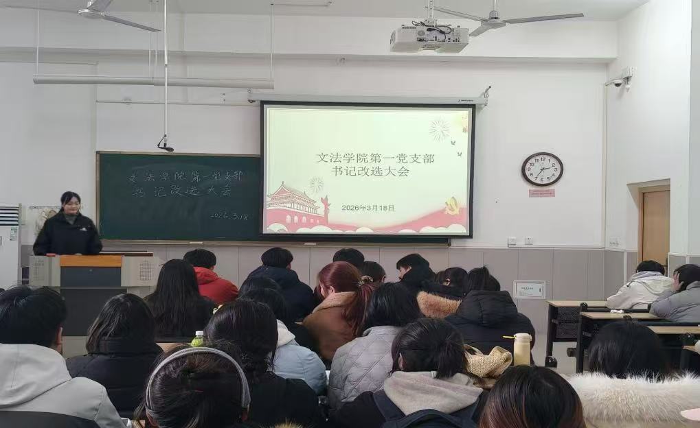 为进一步加强基层党组织建设,我院第一党支部于2026年3月18日下午14时在学院楼B-108举行了文法学院第一党支部书记改选大会。会议由赵淑媛主持,第一党支部全体党员参加会议。