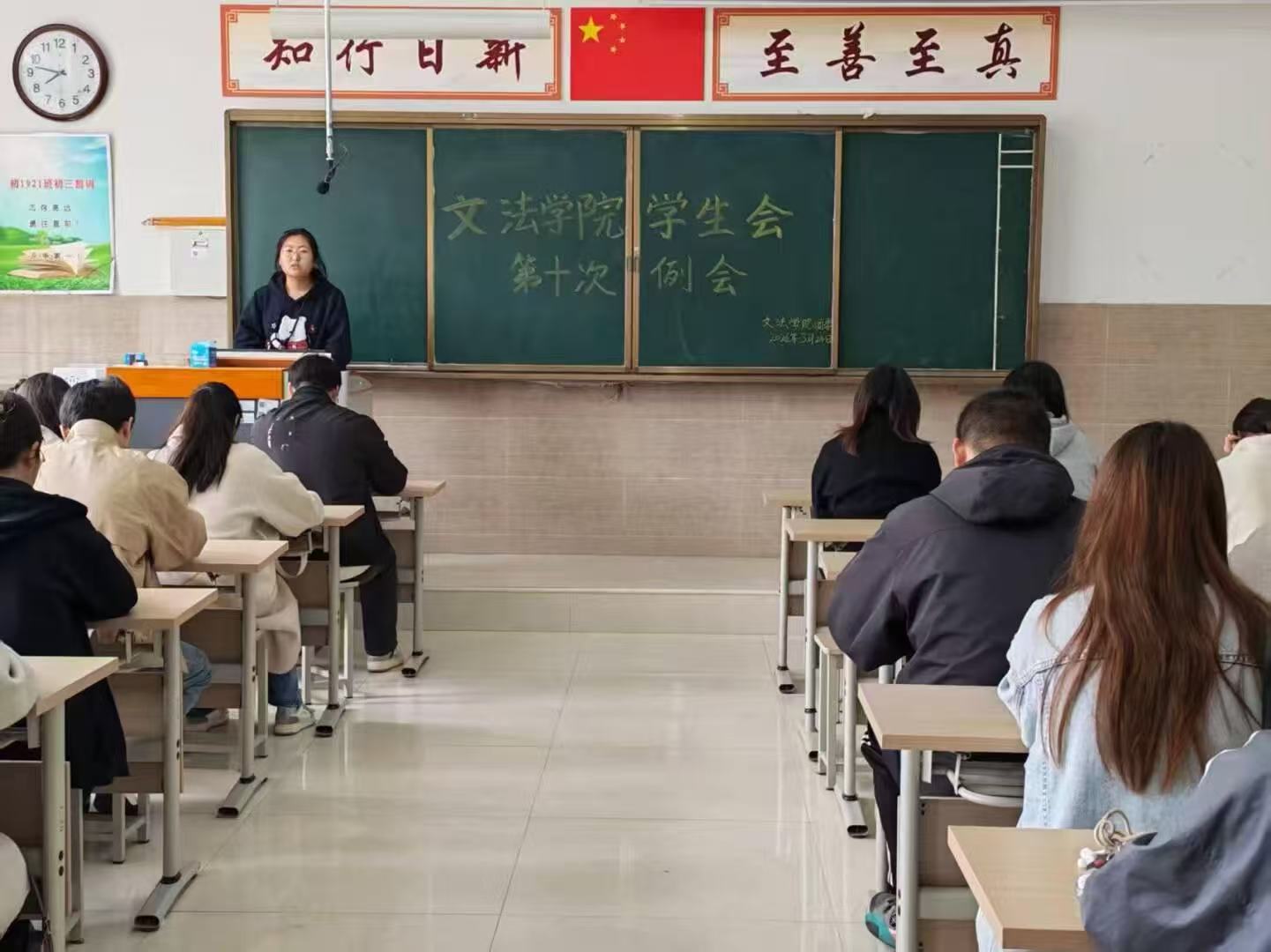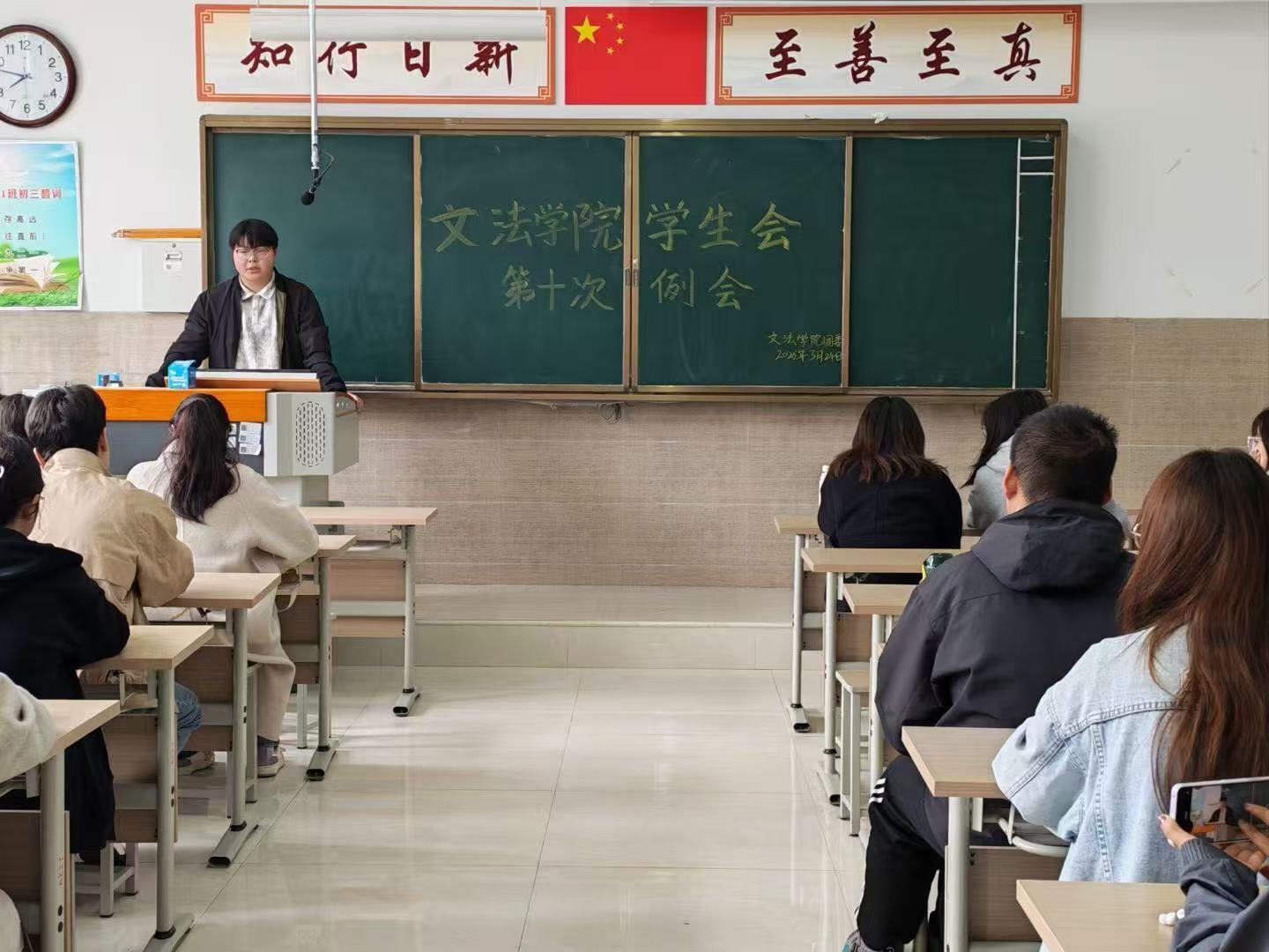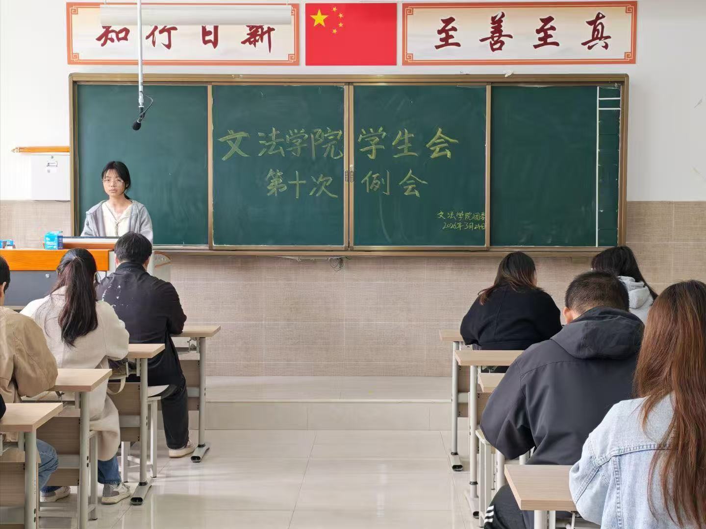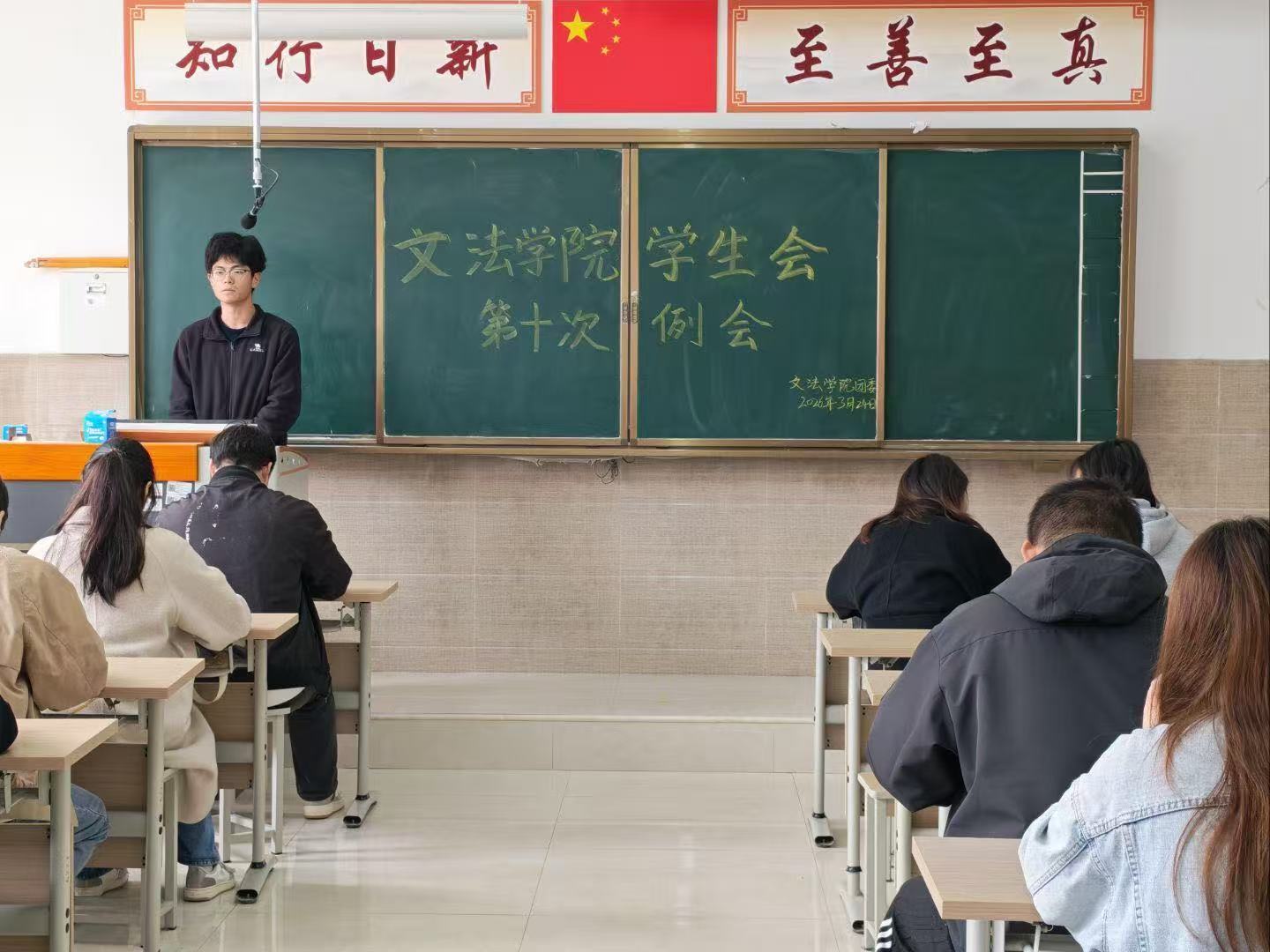 宣传部潘书义介绍,学生会第十次例会黑板字书写已完成;“笔绘法治画卷,心筑法治长城”及“弘扬雷锋精神,传承榜样力量”活动正在推进。