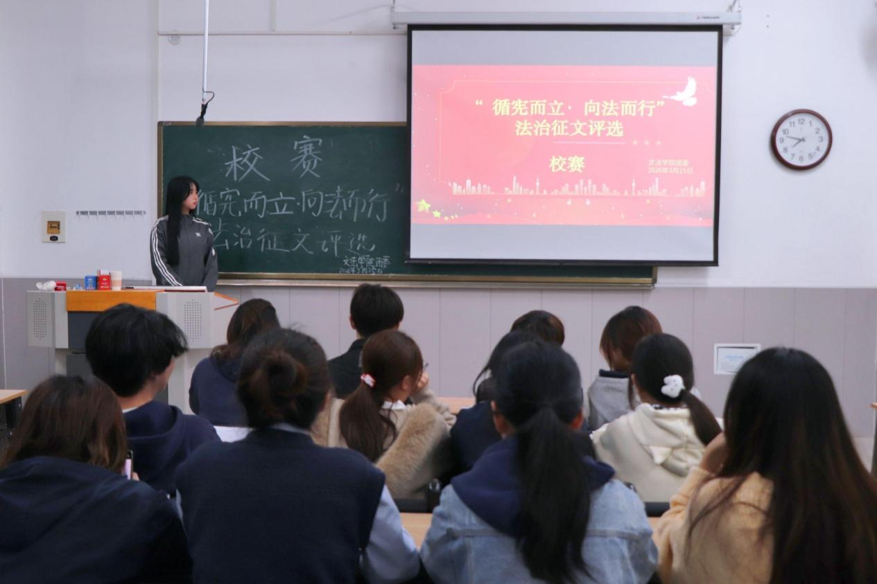 为深入贯彻落实党的二十大精神和习近平法治思想,进一步增强学生的宪法意识与法治观念,我院于3月25日晚在学院楼B-108教室举办了“循宪而立,向法而行”法治征文评选活动,我院学生积极参与。