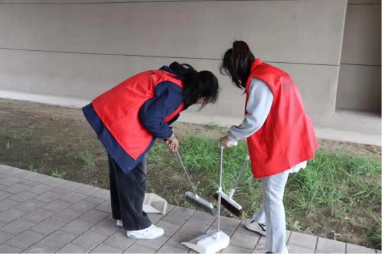 活动当天,志愿者们身穿红色马甲,手持扫帚、垃圾袋、抹布等工具,准时到达指定区域集合。活动负责人简要介绍活动内容及安全注意事项后,志愿者们迅速投入劳动。在校园主干道上,志愿者们分工明确,有的认真清扫落叶和纸屑,有的仔细捡拾绿化带中的垃圾,有的规范整理电动车辆的停放。清扫过程中,志愿者们热情饱满,严格按照垃圾分类要求将杂物投放至指定容器。经过共同努力,校园路面洁净有序、面貌焕然一新,充分展现了文法学院学子良好的精神风貌和强烈的责任担当。