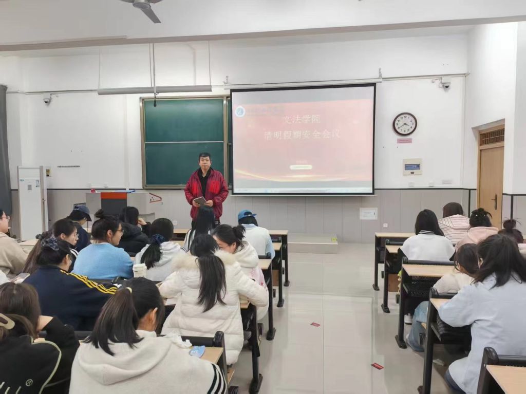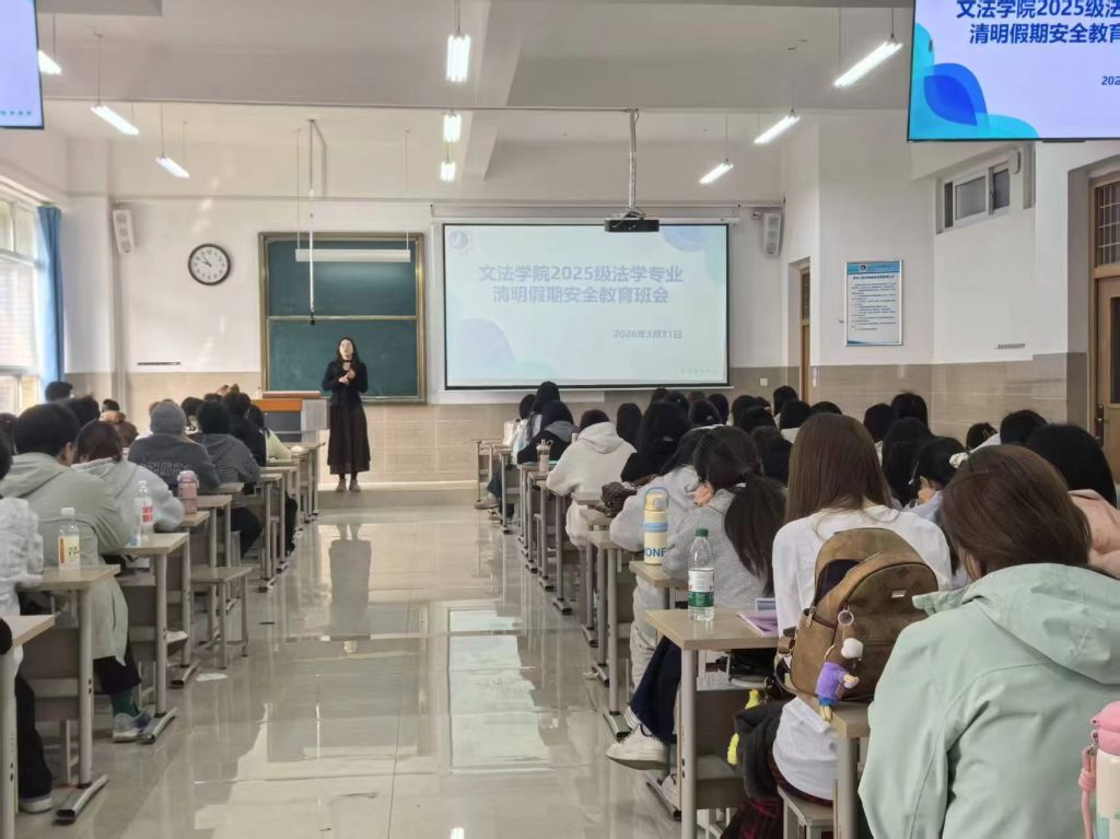 此次清明节假期安全教育主题会议的开展,进一步强化了学生的安全防范意识,提升了大家应对各类风险的能力,为营造安全稳定的校园环境奠定了坚实基础。文法学院将持续把学生安全工作放在首位,常态化开展安全教育与提醒,切实守护每一位学生的平安与健康。
