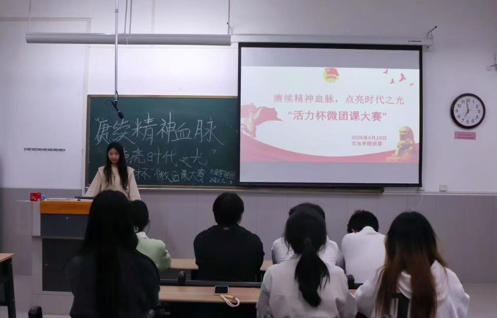 为深入学习贯彻习近平新时代中国特色社会主义思想,强化青年思想引领、传承红色精神谱系,引导团员青年以青春之声践行时代使命,4月10日晚,2026年度“活力杯”微团课大赛在学院楼B-208教室顺利举办。本次大赛以“赓续精神血脉,点亮时代之光”为主题,各团支部团员代表参加此次比赛。