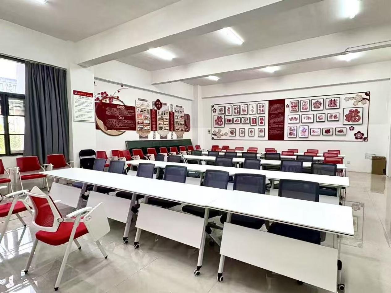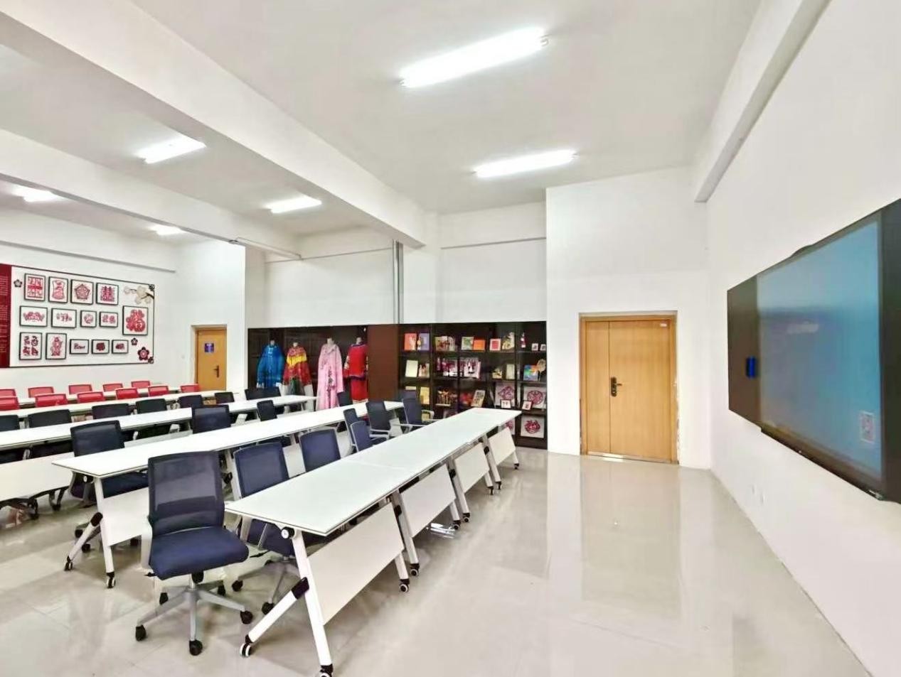 非遗传习所是立足新文科建设与学科发展,紧密融合汉语言文学、汉语国际教育、新闻学、法学四大专业特色打造的文化传承与实践育人平台。习所规划有展示区、数字体验区、学术交流区,集中展陈地方戏曲(怀邦、豫剧等)戏服、道具、剧本,剪纸、面塑、中国结等非遗作品,既为专业教学提供鲜活素材,也为非遗传承搭建实体阵地。