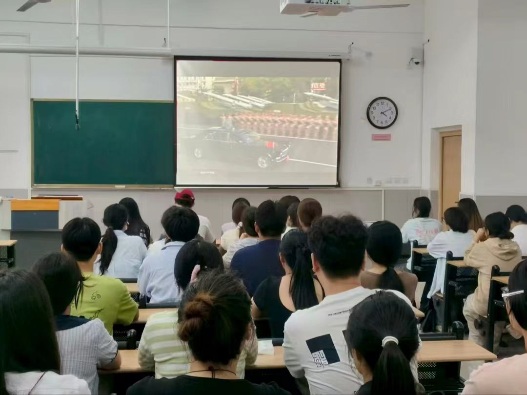 为深入学习中国人民抗日战争暨世界反法西斯战争胜利80周年大会的习近平总书记重要讲话精神,2025年9月4日,文法学院第一党支部在学院楼B316组织观看抗战胜利80周年阅兵仪式主题活动,本次活动由第一党支部教师党员李芳芳主持,第一党支部全体党员参加。
