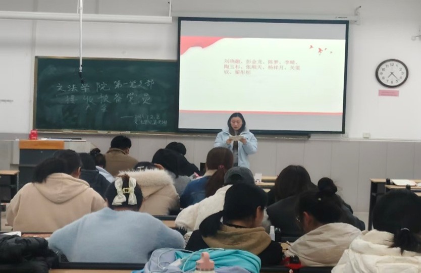 为严格党员发展标准,吸纳优秀学生加入党组织,文法学院第一党支部于2025年12月2日在学院楼B-213召开第33期接收预备党员大会,会议由党支部书记赵淑媛主持,支部全体党员参加会议。