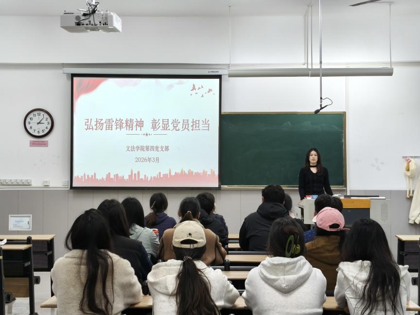 为深入学习和弘扬雷锋精神,引导支部党员在实践中传承红色基因、践行初心使命,文法学院第四党支部于2026年3月24日在学院楼B207教室开展“弘扬雷锋精神 彰显党员担当”主题党日活动。
