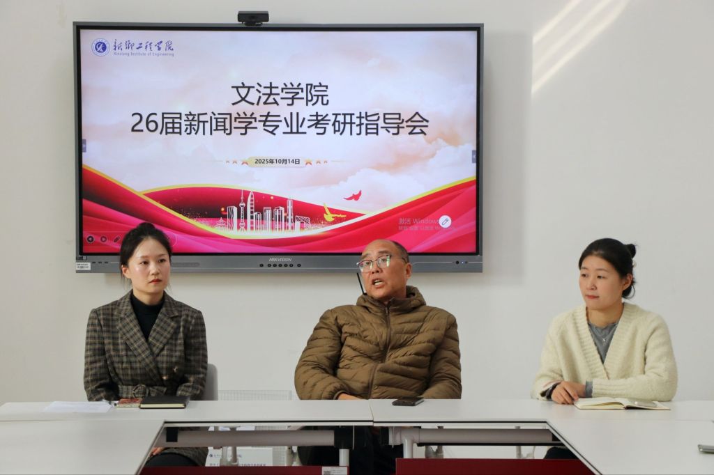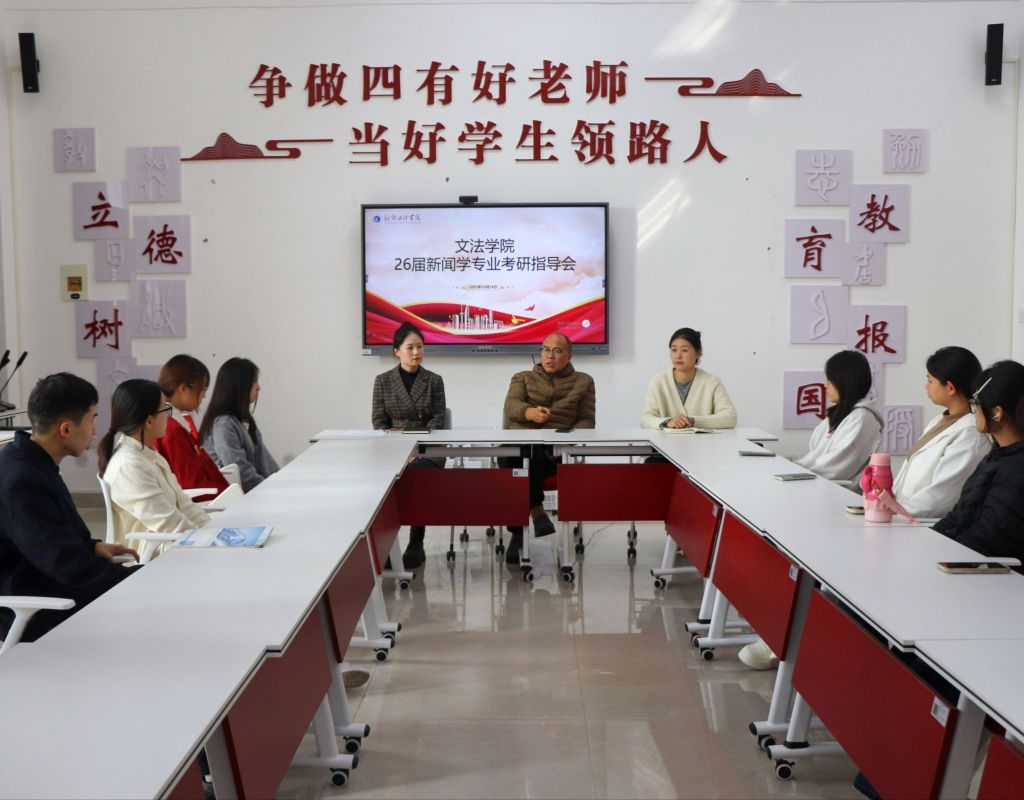 为帮助同学们更好地了解考研过程中所需要注意的问题,解答对考研的疑问,我院于10月14日上午在学院楼B-314名师工作室召开26届新闻学专业考研指导会。本次会议由马莹莹老师主持,米格智教授、牛科伟老师共同主讲,我院26届新闻学专业考研学生代表参加。
