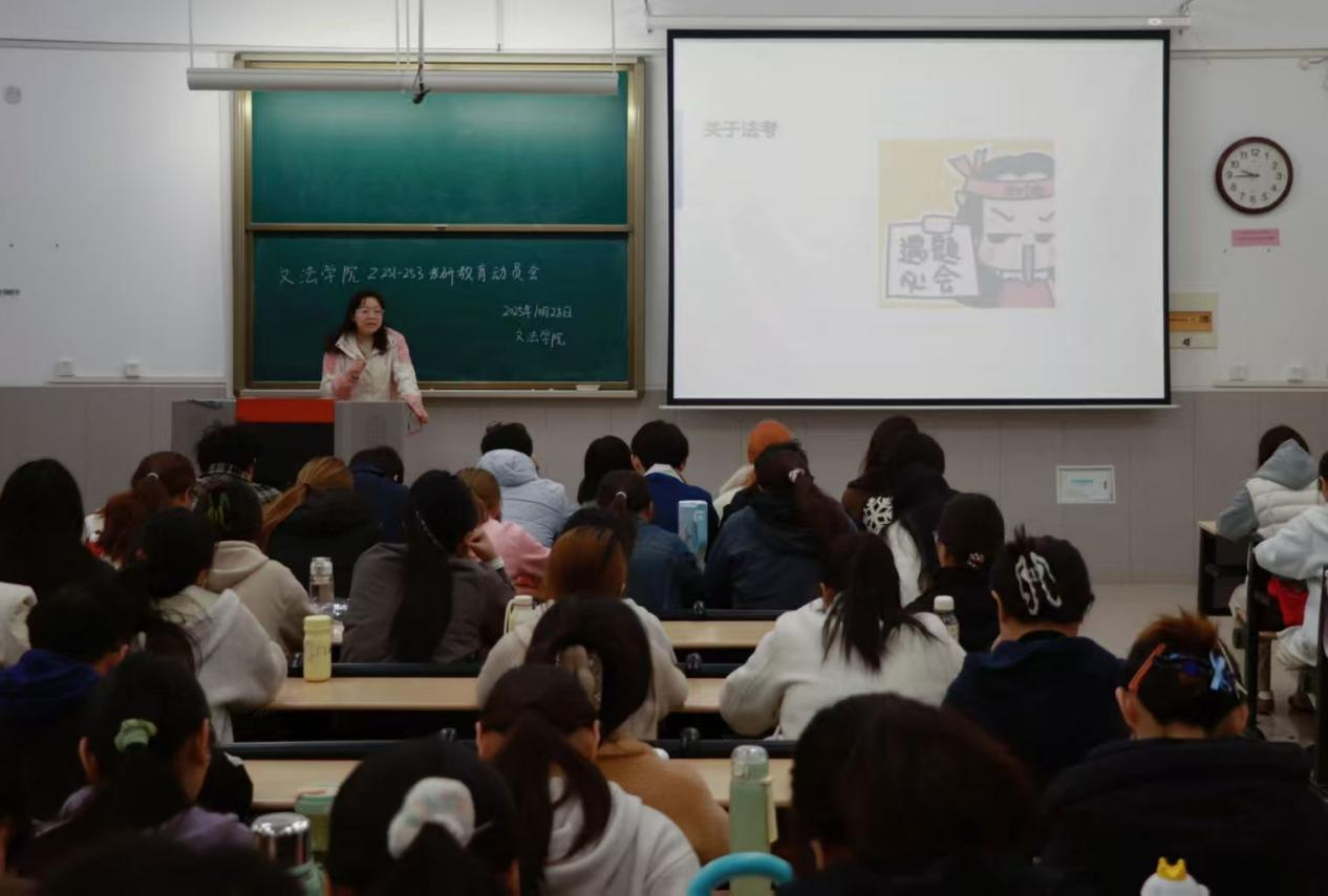 为帮助学生明确升学路径,科学规划考研与职业发展,了解考研信息并做好学习规划,我院于10月28日在学院楼B-402教室召开25级专升本法学专业考研指导会。本次会议由刘旭行老师主持,黄瑞敏老师、李月阳老师共同主讲,我院Z法学25级全体学生参加。