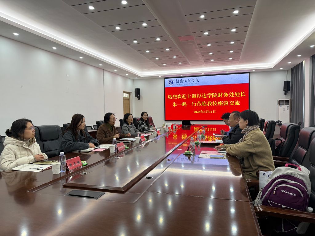 2026年3月11日下午,上海杉达学院财务处处长朱一鸥一行三人莅临我校,我校副校长赵瑞玲、财务处处长翟兰杰、财务处相关科室负责人热情接待并参加座谈。会议由翟兰杰主持。