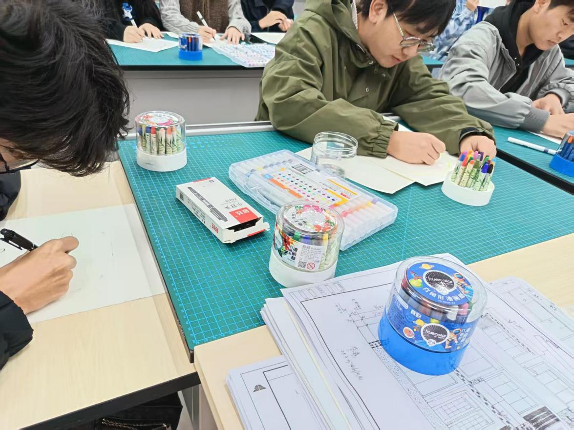 在创作环节,学生们进行面具创作:一面以“社会自我”为主题,自由选择用规整线条、明亮色彩等方式勾勒社交场景中的公开形象;另一面以“内在自我”为核心,用自由笔触、柔和色调释放独处时的真实感受。现场氛围专注而温暖,有学生用蓝色渐变与几何图案表现“日常活动中靠谱的组织者”,也有学生以浅灰底色搭配星星贴纸,诉说“渴望被理解却不善表达”的内在心声。“不用刻意追求完美,每一笔都是真实的表达”,主讲老师在现场轻声引导,让学生在无评价的氛围中卸下心理防御。