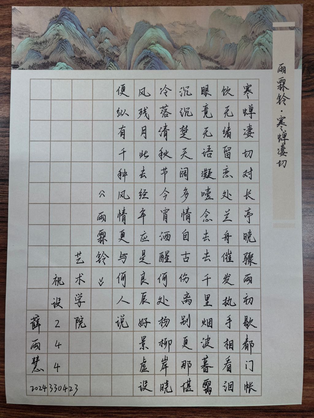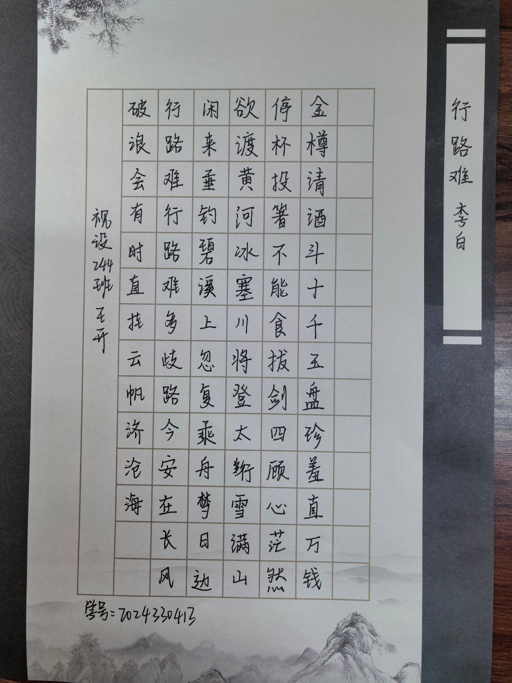 为了进一步展示同学们在课堂中学到的知识和技巧在作品中的灵活运用,同学们在任课教师李亚迪的组织下,开展了《硬笔书法》课程优秀作品线上展览活动。