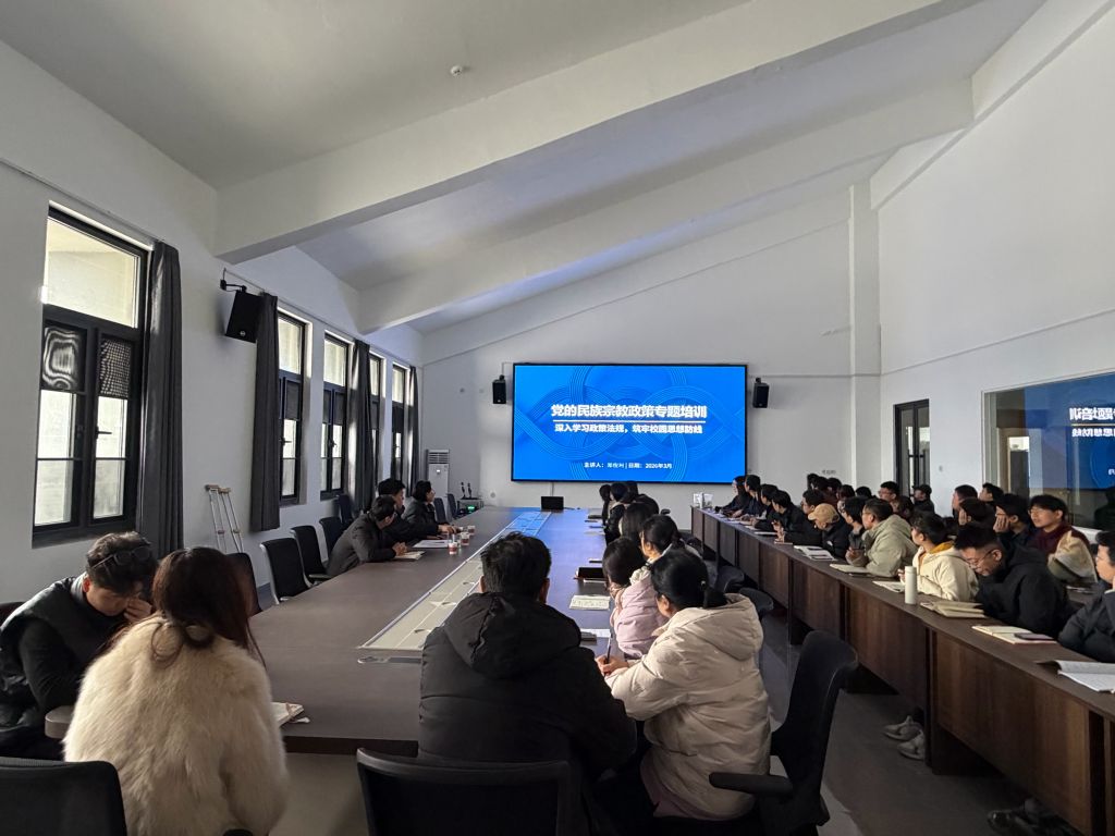 为深入落实学校党委关于民族宗教工作的部署要求,切实筑牢校园意识形态安全防线,强化教职工责任意识,3月11日,机电工程学院在学院楼418会议室开展党的民族宗教政策专题培训。学院党委副书记郑俊珂主讲,全体教职工参加培训。
