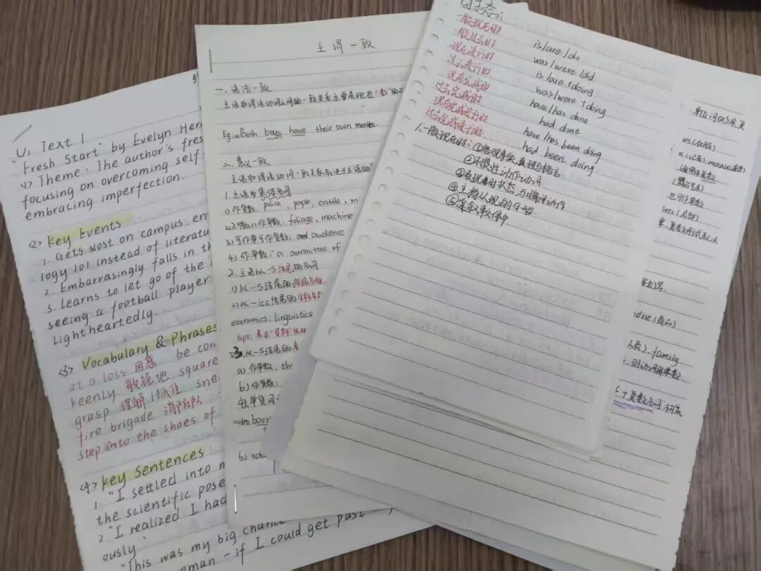 外国语学院高度重视本次活动,前期通过积极宣传动员,充分调动了同学们的热情,得到了同学们的广泛响应,纷纷提交形式多样的笔记。这些笔记中巧妙运用了思维导图与流程图等形式,通过颜色编码、手绘插图,将复杂的知识结构化、可视化,突出重点难点,增强记忆效果。此外,许多笔记在页边添加了个人心得、疑问和改进建议,使笔记整体风格兼具科学性与创意性,成为一种真正能“用”的学习工具,也成为一份充满个人特色的知识艺术作品。内容上,这些笔记涵盖语法要点、词汇拓展与句型示例,配有音标和例句,便于英语学习与复习,让人读起来一目了然。笔记不仅是课堂的延续,还是同学们自主思考与延伸的最佳体现。在整理笔记过程中,同学们不仅提升了学习效率,还加深了对课程内容的理解。