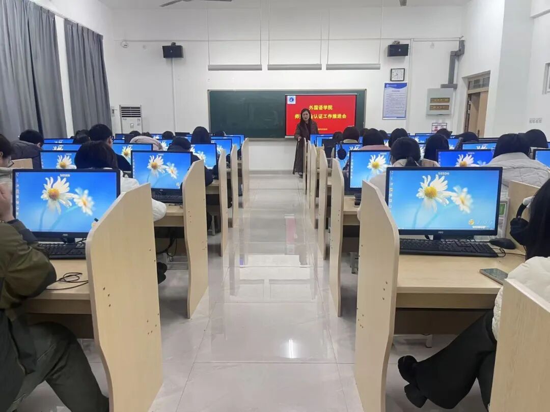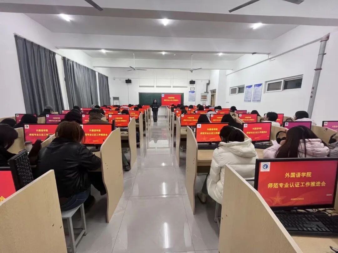 为扎实推进英语专业师范认证迎评准备工作,2月25日,外国语学院在语音室3召开师范专业认证工作推进会。学院领导及全体教师参加会议。