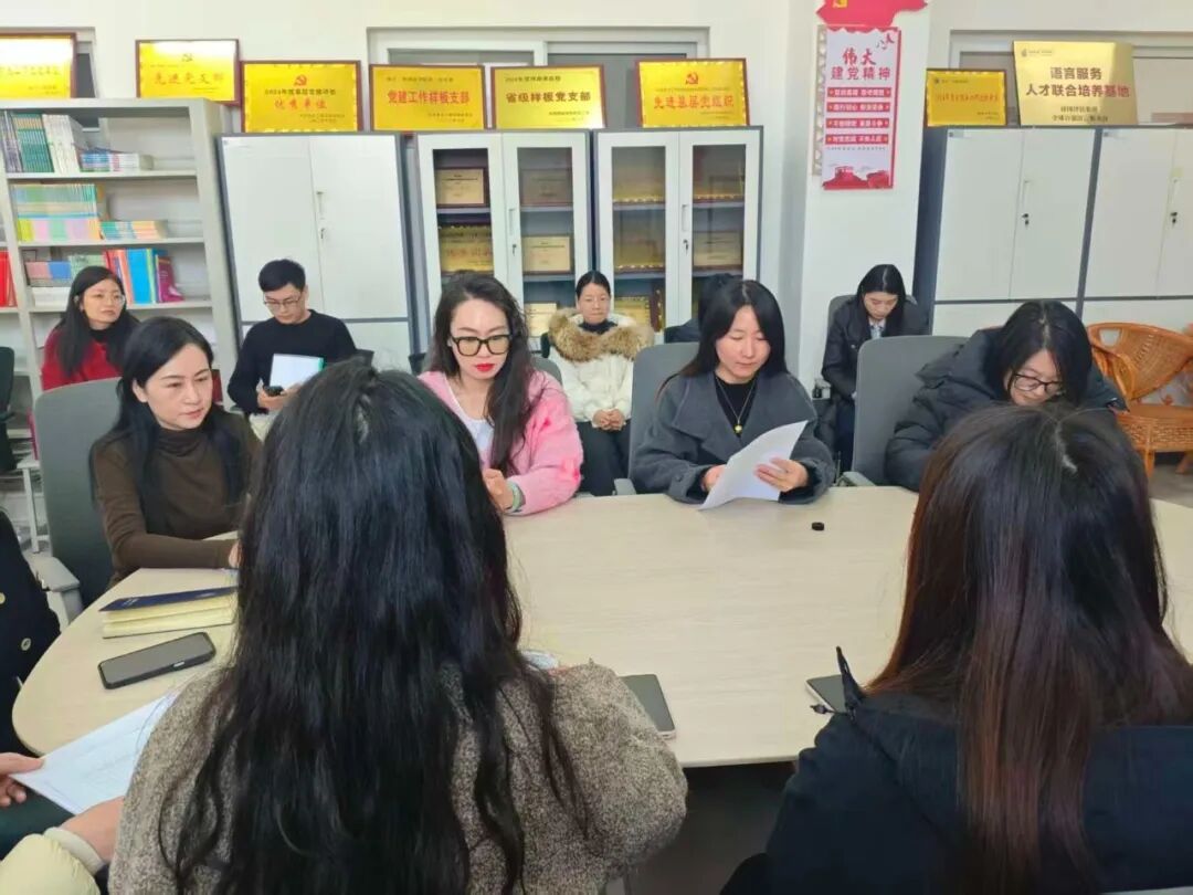 为深入学习贯彻习近平新时代中国特色社会主义思想和党的二十届四中全会精神,近日,外国语教工党支部召开了专题组织生活会。会议由组织委员王清蔓主持,支部全体党员参加。